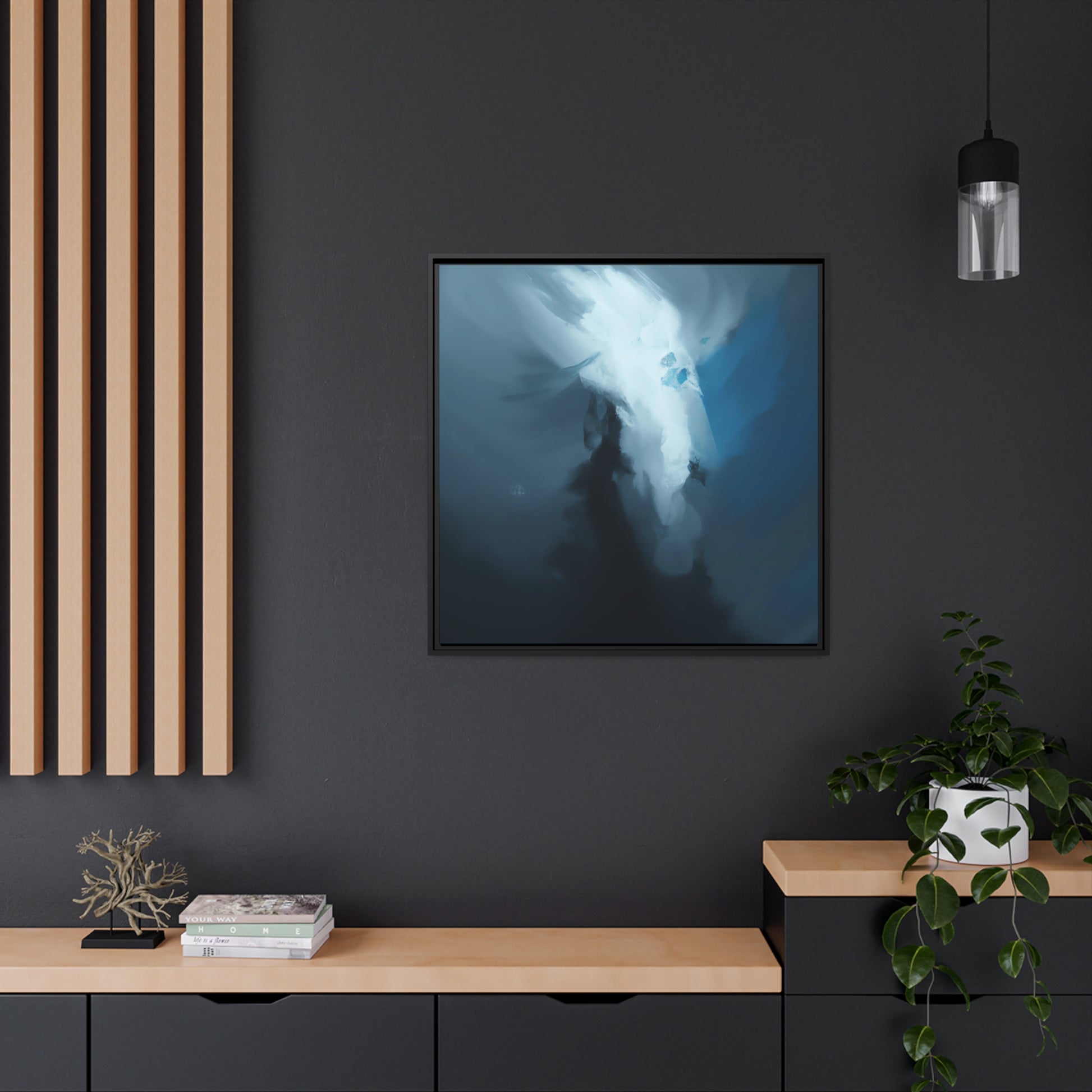 Diese originelle abstrakte digitale Kunst ist eine atemberaubende Komposition aus blauen, grünen und kühlen Grautönen. Seine komplizierten Formen und Linien ergeben ein faszinierendes Stück, das in jedem Raum einen perfekten Blickfang darstellt. Mit seinen breiten Pinselstrichen und subtilen Texturen bringt diese Leinwand Eleganz und Ruhe in Ihr Zuhause. #abstractpainting #abstractart #contemporaryart #canvasart #digitalart #modernart #modernpainting #homedecor #interiordesign #walldecor #interiorstyling