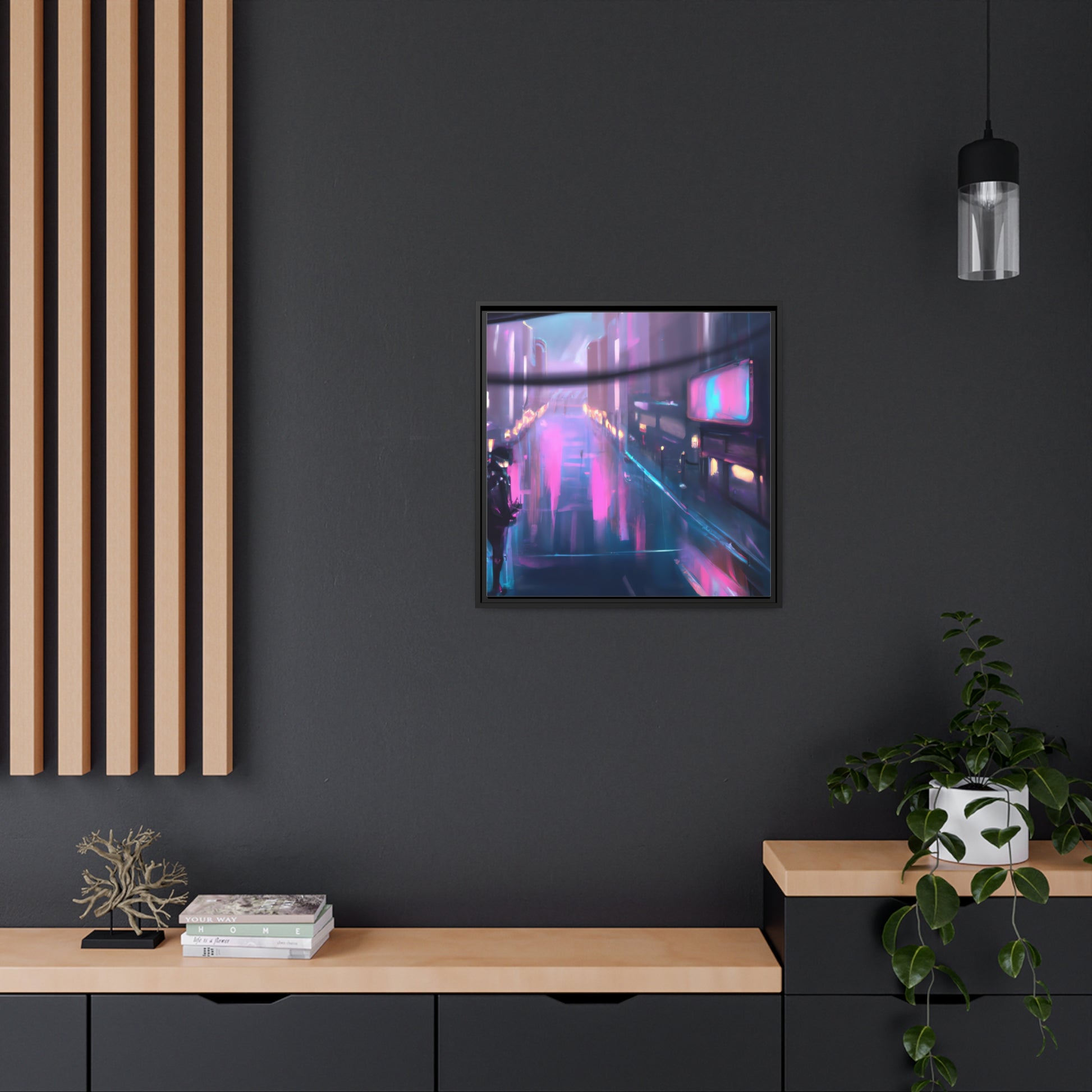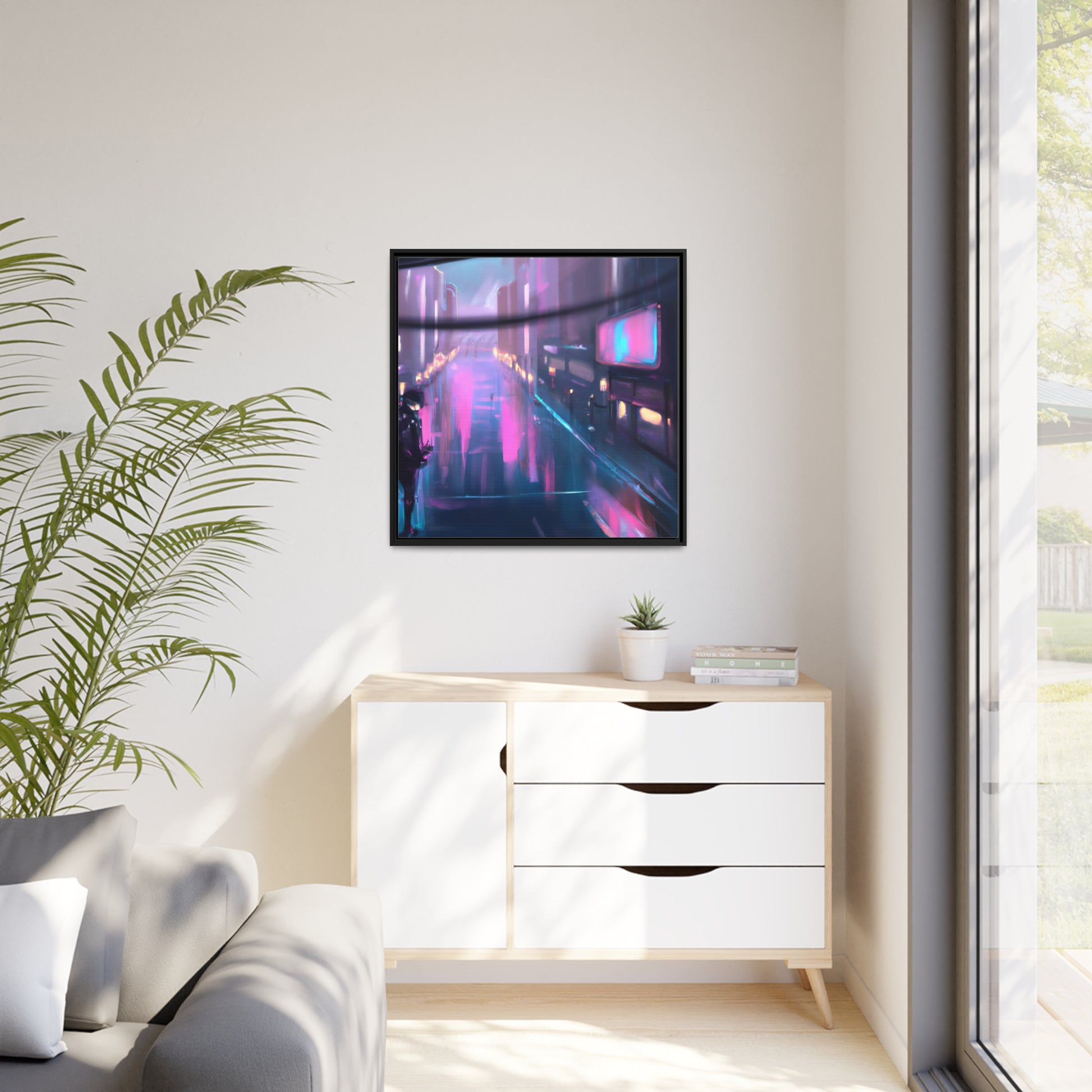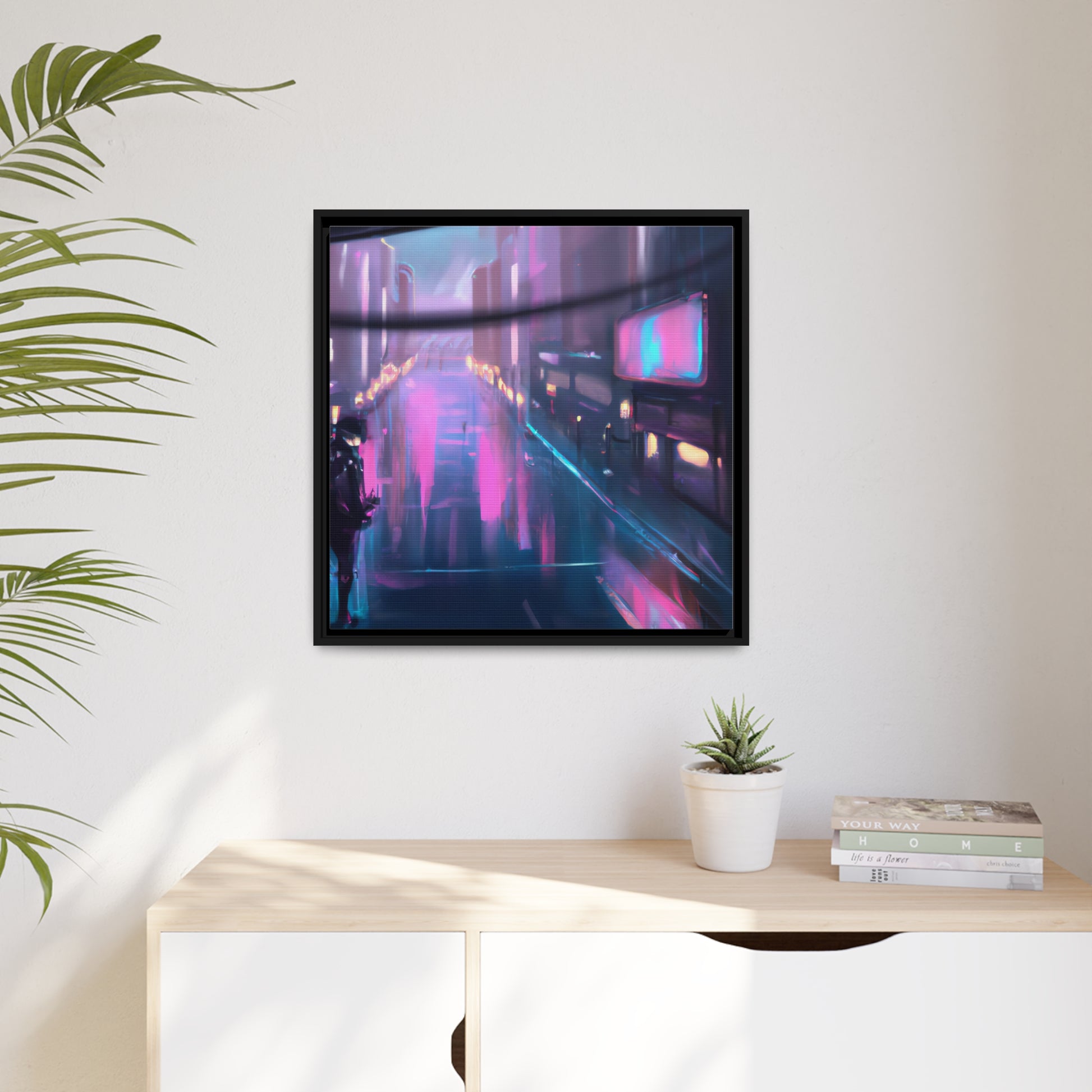 Diese digitale Kunstleinwand stellt eine Cyberpunk-Welt dar, die mit Neonlichtern und Pastellblau übersät ist. Von staubigen Lagerhäusern bis hin zu futuristischen Autobahnen beleuchtet dieses Synthwave-Stück die obskure Schönheit und Intensität des Cyberpunk-Lebensstils. Ob zu Hause oder im Büro, diese Leinwand wird ein mutiges Statement setzen. #Cyberpunk #Synthwave #Digitalart #Canvasart #Neon #Nostalgie #Retrogaming #Neonlichter #Artwork #Interiordesign #Homedecor