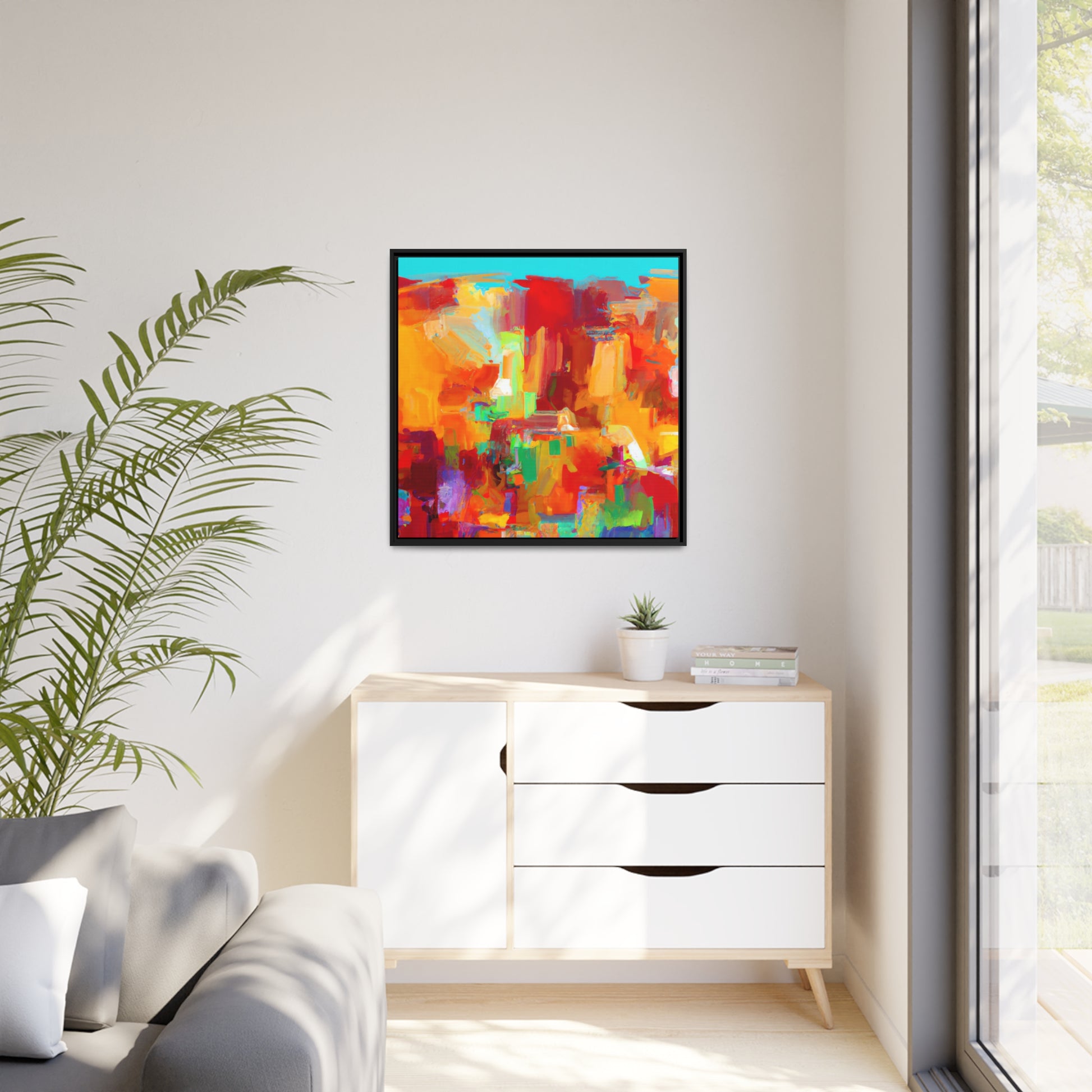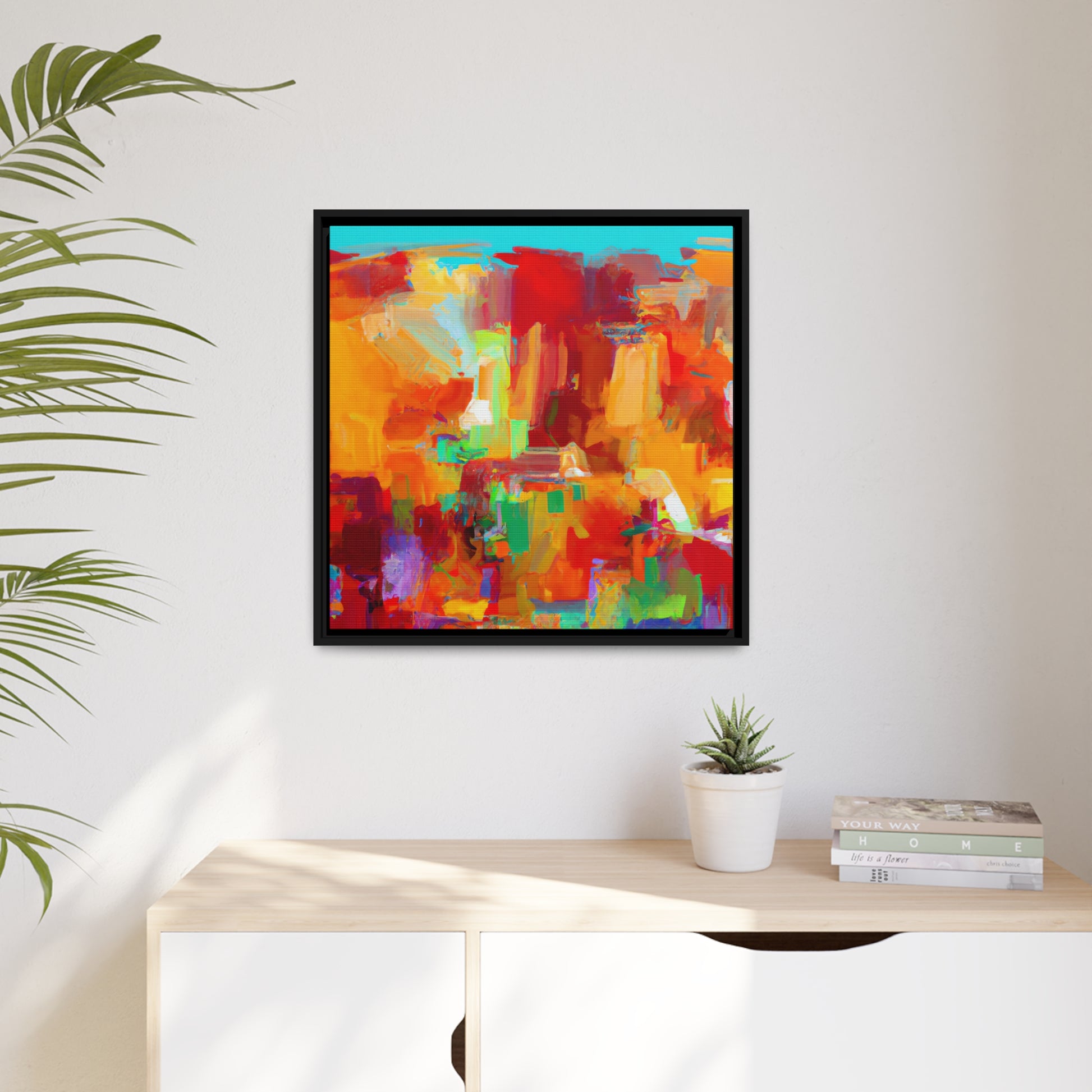 This vibrantly colored digital abstract expressionistic painting on a canvas will brighten up any room or wall. The layering of hues, making use of warm and cool tones, will draw your eye and captivate you with the motion and motion and line of the work. #abstraction #art #painting #expressionism #canvas #colors #vibrant #digitalart #expressionism #radart #wallart