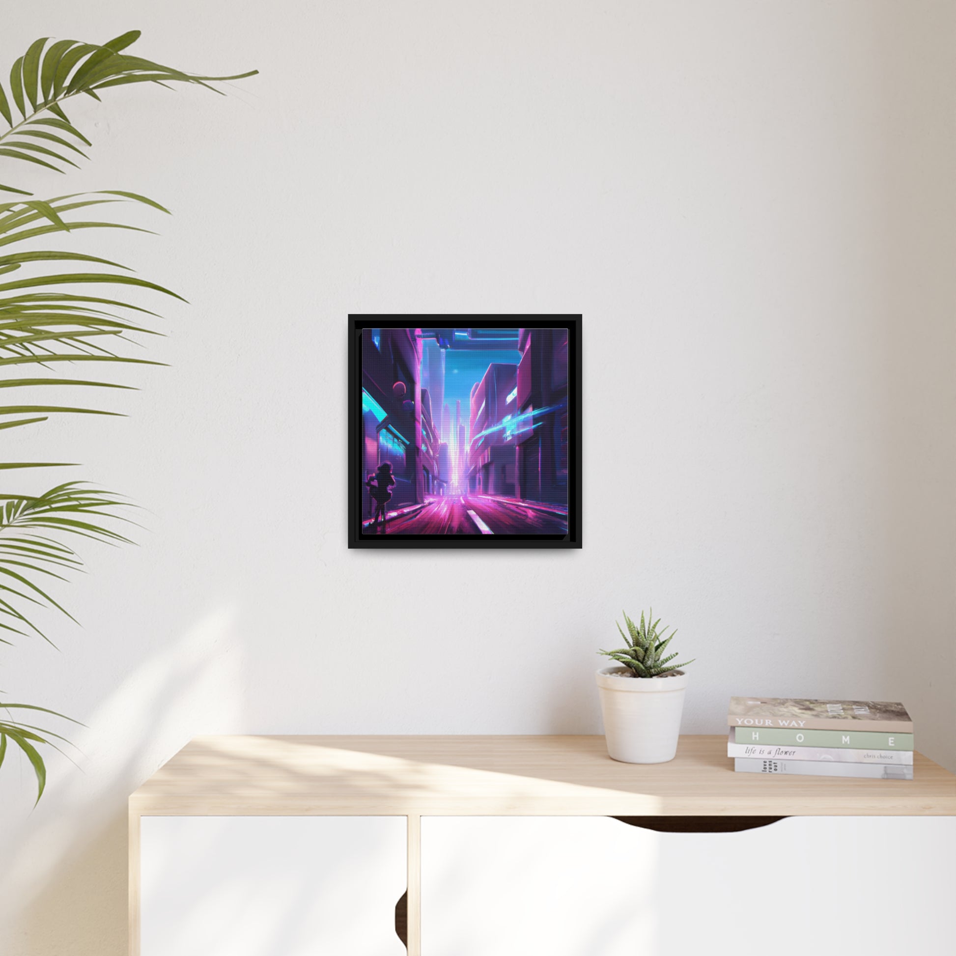 This eye-catching canvas of cyberpunk artwork will complete any room. With its synthwave and digital art elements, this canvas creates a modern look and feel that's intertwined with the past. It's sure to draw attention, whether hung on a wall or standing alone. #cyberpunk #synthwave #digitalart #canvas #artwork #painting #modern #intertwined #attention #wall #standing