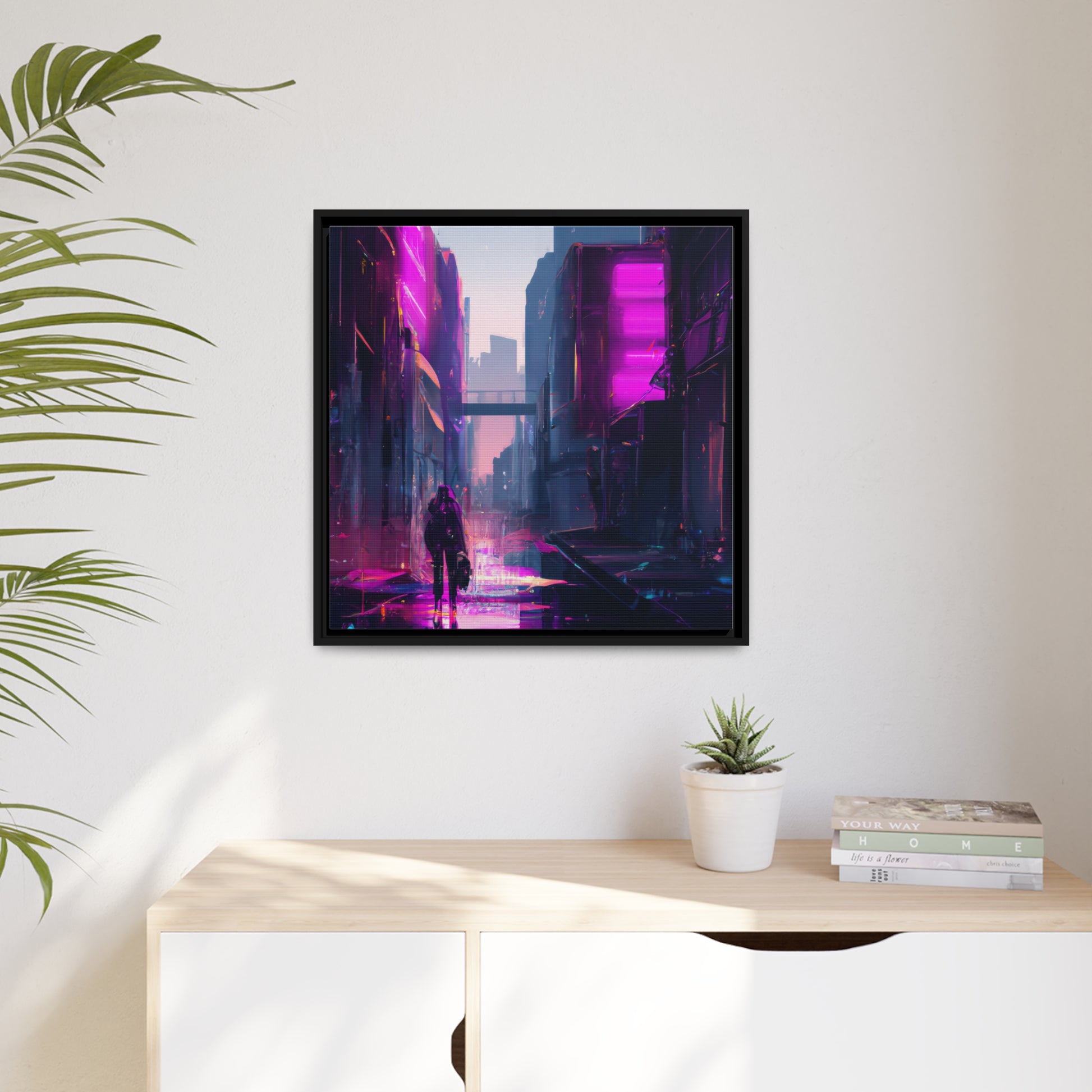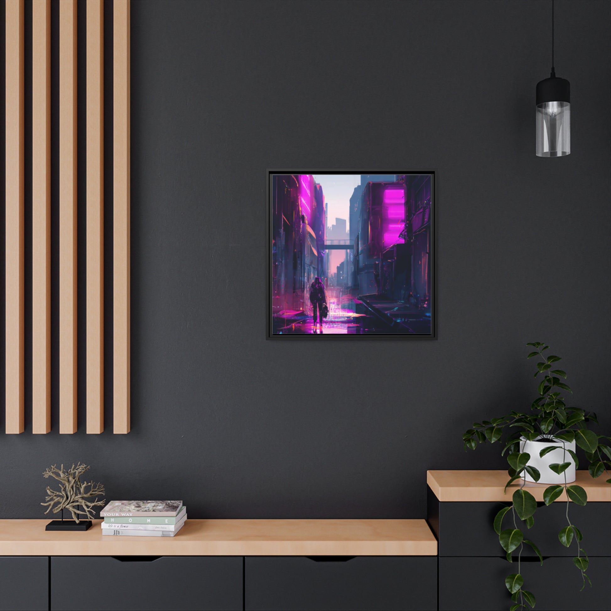 This canvas art is a must-have for any Cyberpunk/Synthwave fan! It features a vibrant digital aesthetic, with a stunning composition of a cyberpunk cityscape that'll bring any room to life. Add a splash of post-cyberpunk cool and modern energy to your space with this dynamic and captivating artwork! #cyberpunk #synthwave #digitalart #canvasart #artprint #postcyberpunk #scifiart #cyberart #modernart #interiorart #homedecor