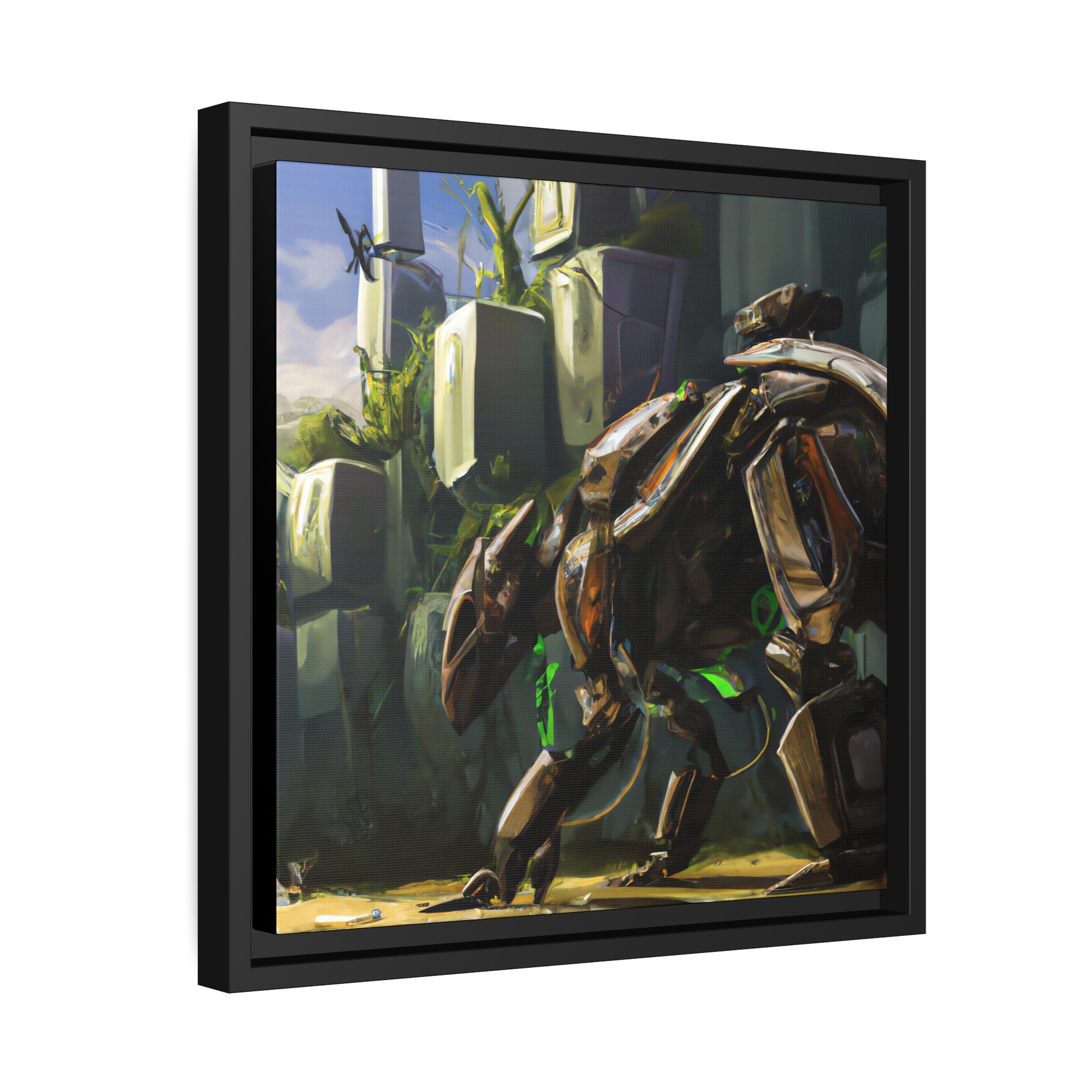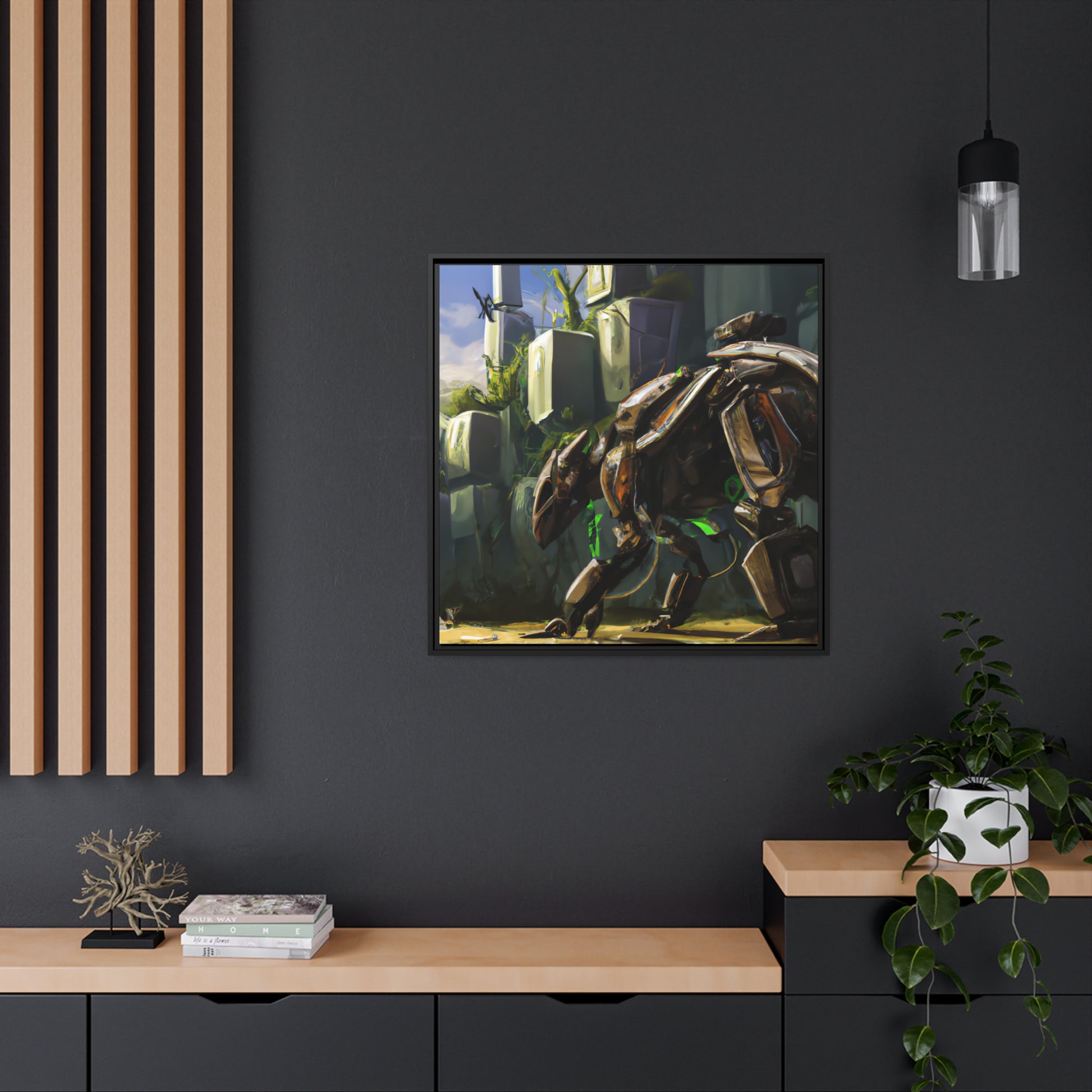 This digitally inspired canvas features a stunning cybernetic animal, set against an environment filled with vibrant colors. Light and shadow play off each other in this visually captivating piece. Perfect for any modern home decor, this canvas allows you to bring the beauty of digital art into your living space. #DigitalArt #CyberneticAnimal #CanvasWallArt #VividColors #ModernDecor #LightningAndShadow #UniqueDesign #BoldColors #AbstractPainting #PaintingOnCanvas #FineArtPrint