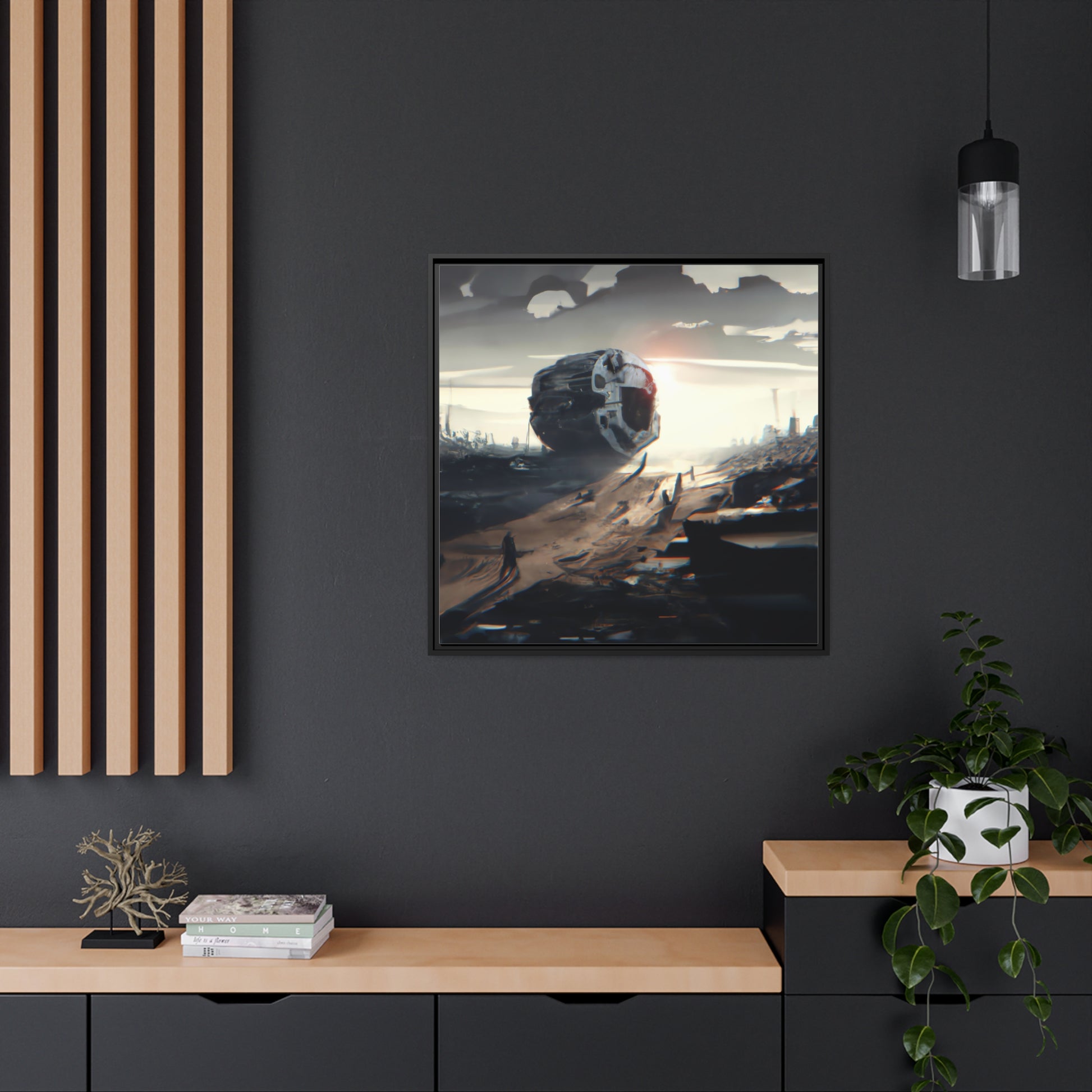 This digital art painting on canvas will take you to a barren apocalyptic world of science fiction. It captures the desolate scene of a dystopian future with the last survivor standing tall, her futuristic outfit blended in the background. This hauntingly beautiful painting will capture the hearts of all sci-fi movie lovers. #apocalyptic #dystopian #scifi #digitalart #futurist #survivor #moviebuff #lastperson #worldofsci-fi #drama #canvaspainting