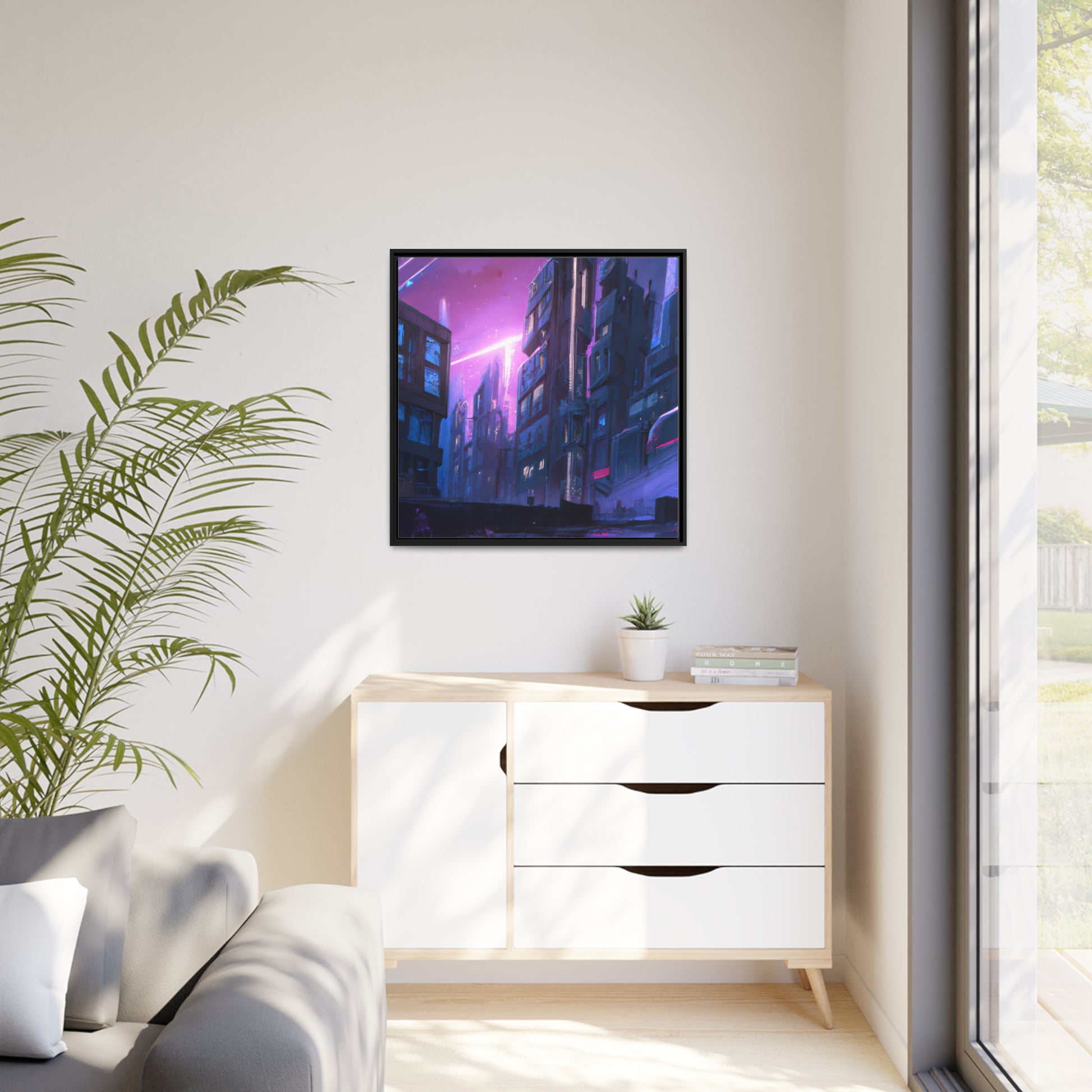This one-of-a-kind canvas painting constructs an avant-garde environment of vivid colors, fused with sections of both cyberpunk and synthwave elements. Created digitally, this piece of art delivers a dazzling, powerful and mesmerizing visual experience that you can enjoy in your own home. #cyberpunk #synthwave #digitalart #canvas #painting #art #vividcolors #avantgarde #mesmerizing #powerful #dazzling #experience
