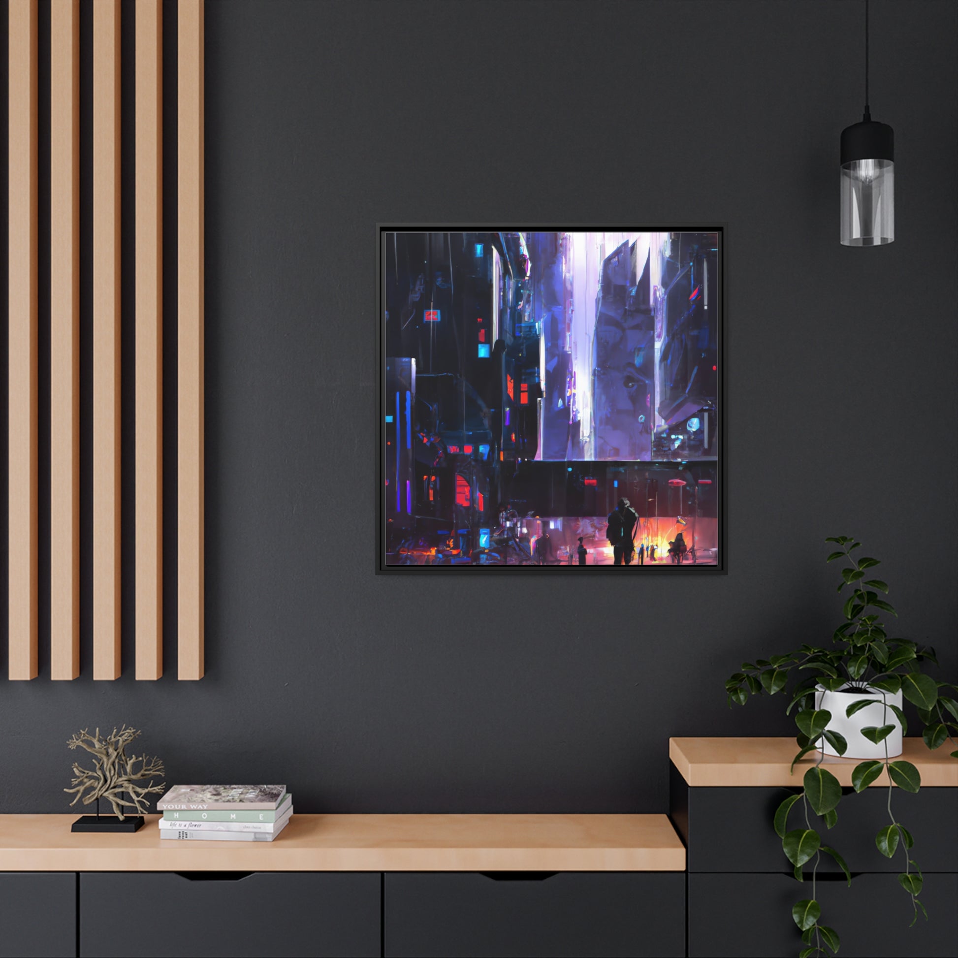 This canvas of vibrant cyberpunk art will take you on a journey of neon lights and the bionic future. From abstract digital art to the pulsing synthwave, the painting mixes futuristic visuals and macabre scenes that blend with a cyberpunk atmosphere. Vivid colors and detailed elements merge to create artwork that will give any home a modern edge. #cyberpunk #synthwave #digitalart #canvasart #futuristic #abstractart #neonlights #bionicfuture #modernedge #macabre #vividcolors