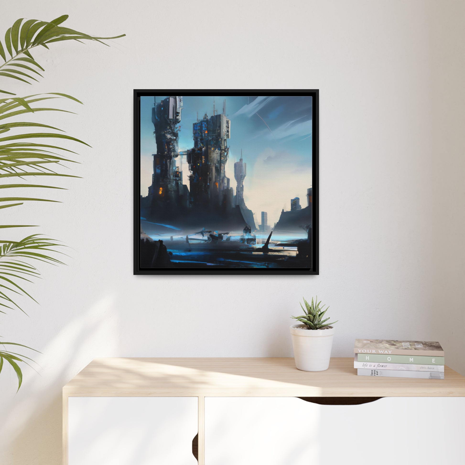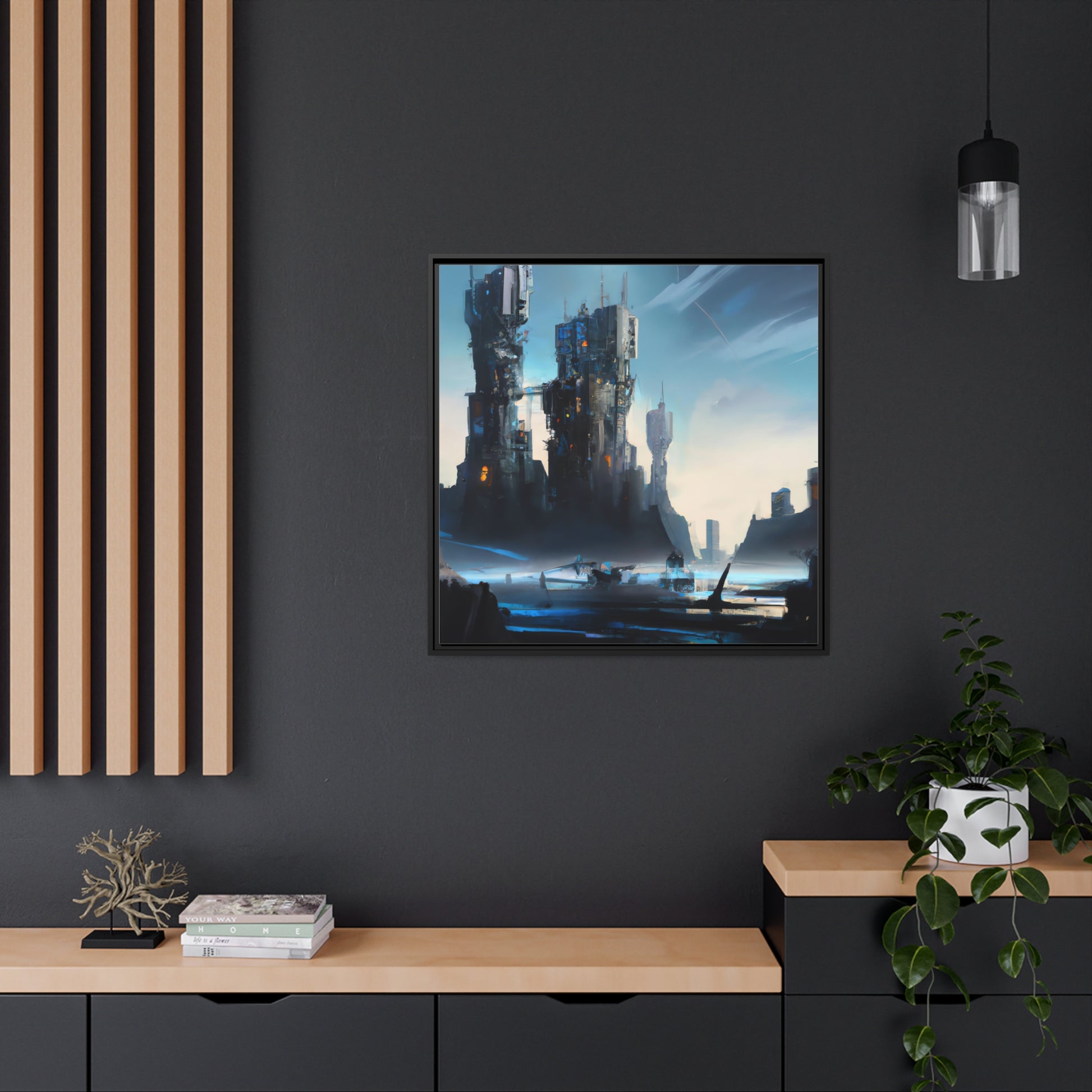 This dystopian digital art canvas will take you on an adventure of dark and mysterious settings. The vibrant colors capture and narrate the surrounding architecture and crumbling landscape, allowing the imagination to wander. A perfect gift for any sci-fi fan! #dystopia #scifiart #digitalart #canvasprint #postapocalyptic #fantasyscene #sci-fipainting #artlovers #imaginationwanderer #adventurousvibes #dystopianfuture