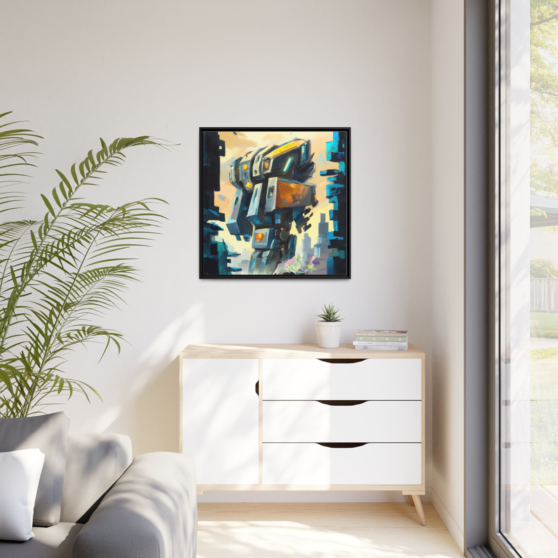 This vibrant, digital painting of a complete robot in its environment is sure to bring life to your home. The chaos and energy of the environment and the energy of the robot are captured in this canvas, making it an excellent conversation starter. As a perfect accent piece, it will truly be a standout in your home. #robot #canvas #painting #art #homedecor #vibrant #digitalart #decor #mixedmedia #modernart #wallart
