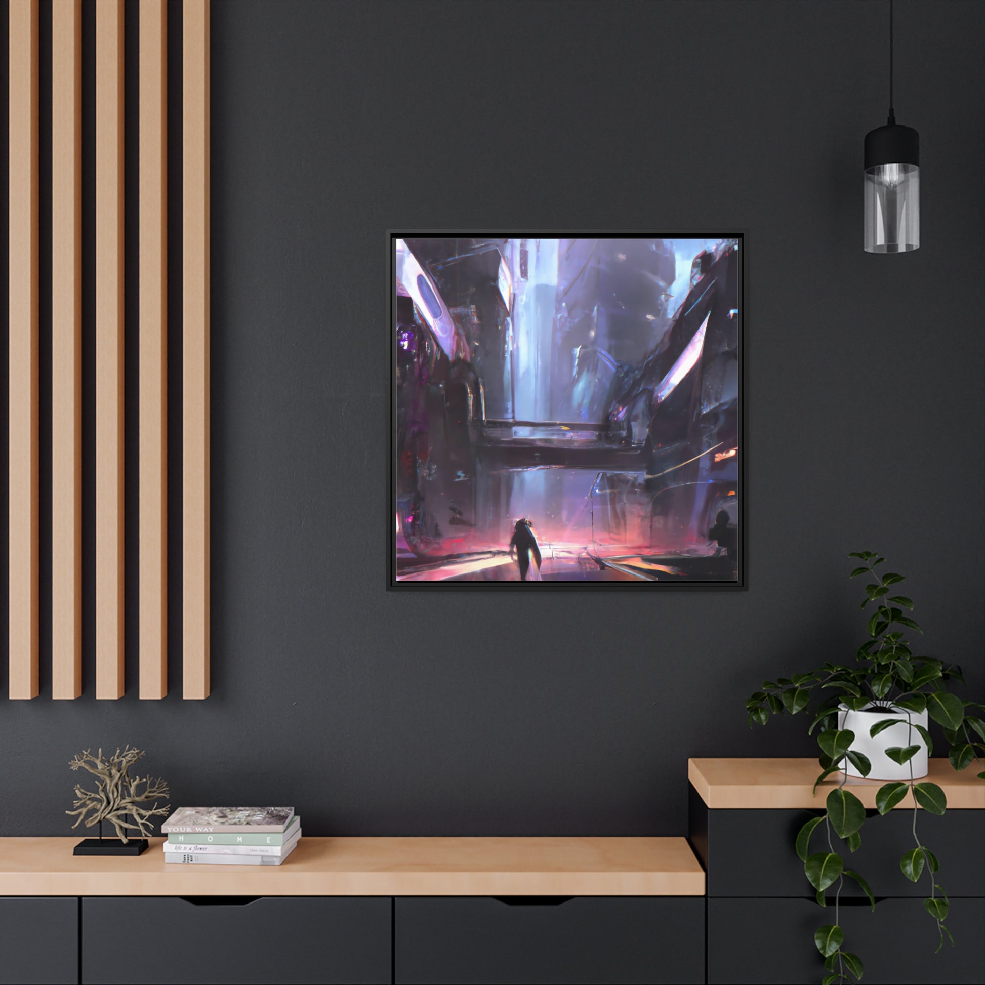 This 24 x 36 inch digital art canvas features bold and vibrant visuals inspired by synthwave and cyberpunk vibes. Best enjoyed in the presence of electric lighting, this canvas is sure to be a conversation starter and the perfect addition to any high-tech decor. #synthwave #cyberpunk #digitalart #canvas #art #homedecor #modern #bold #vibrant #lighting #electronic