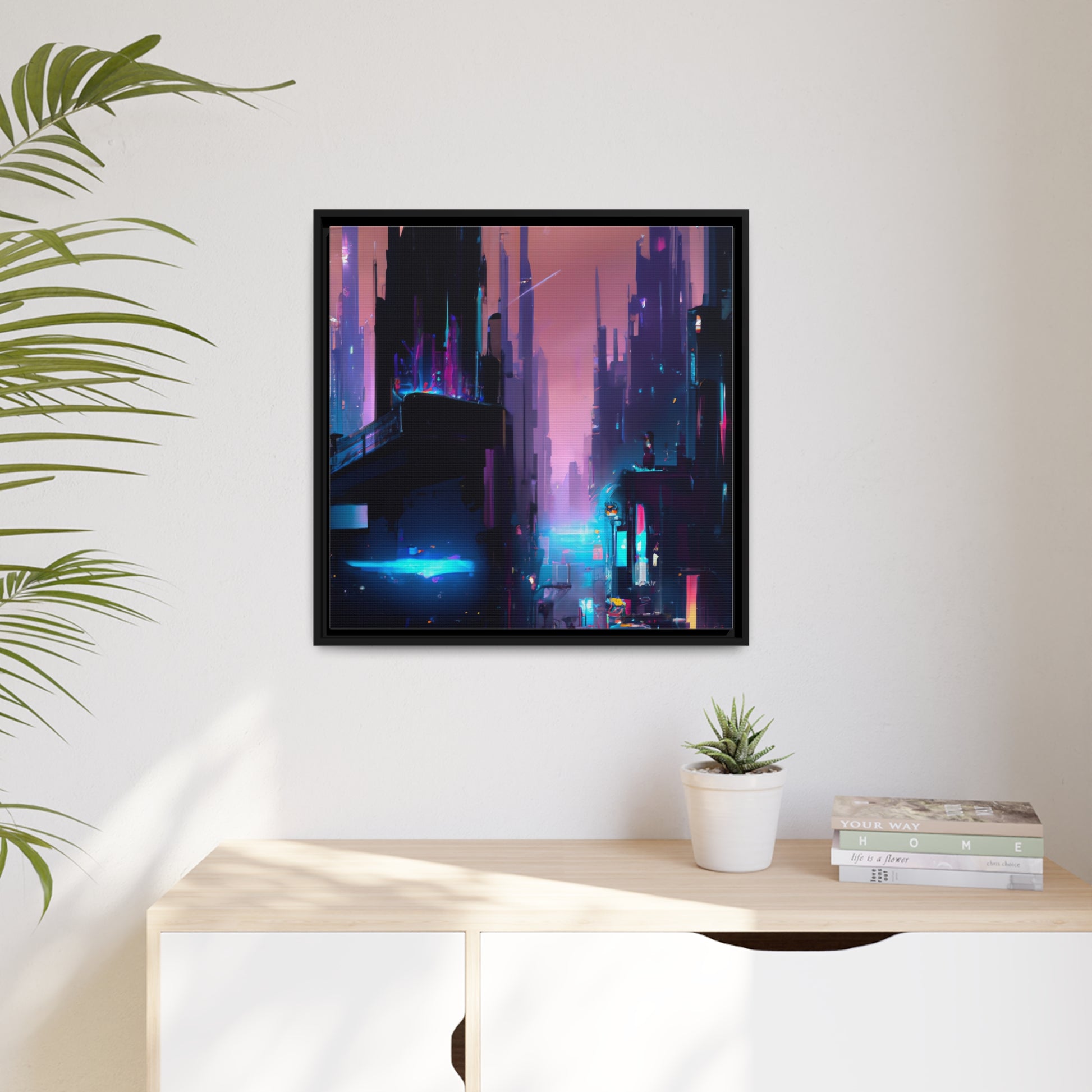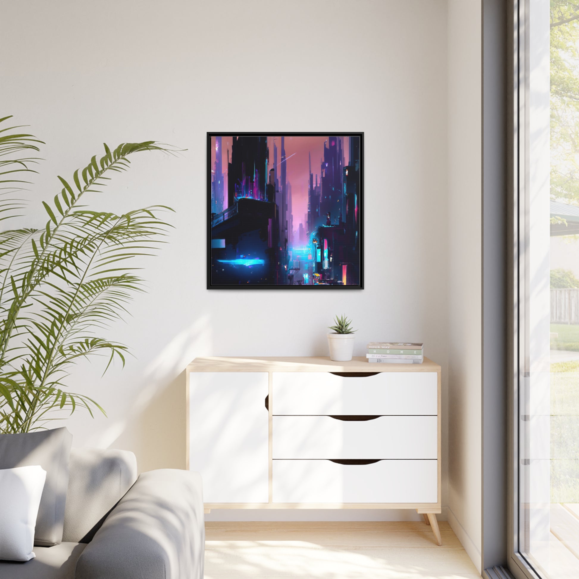 This vibrant cyberpunk painting is printed on high-quality canvas and perfect for bringing life to any space. The synthwave and digital art pieces perfectly blend bold colors and layered shapes to create a captivating piece of art. Artist's unique style brings to life a unique story for you to ponder. #cyberpunk #synthwave #digitalart #artwork #canvas #painting #abstractart #homedecor #artist #vibrant #ponder #decorate