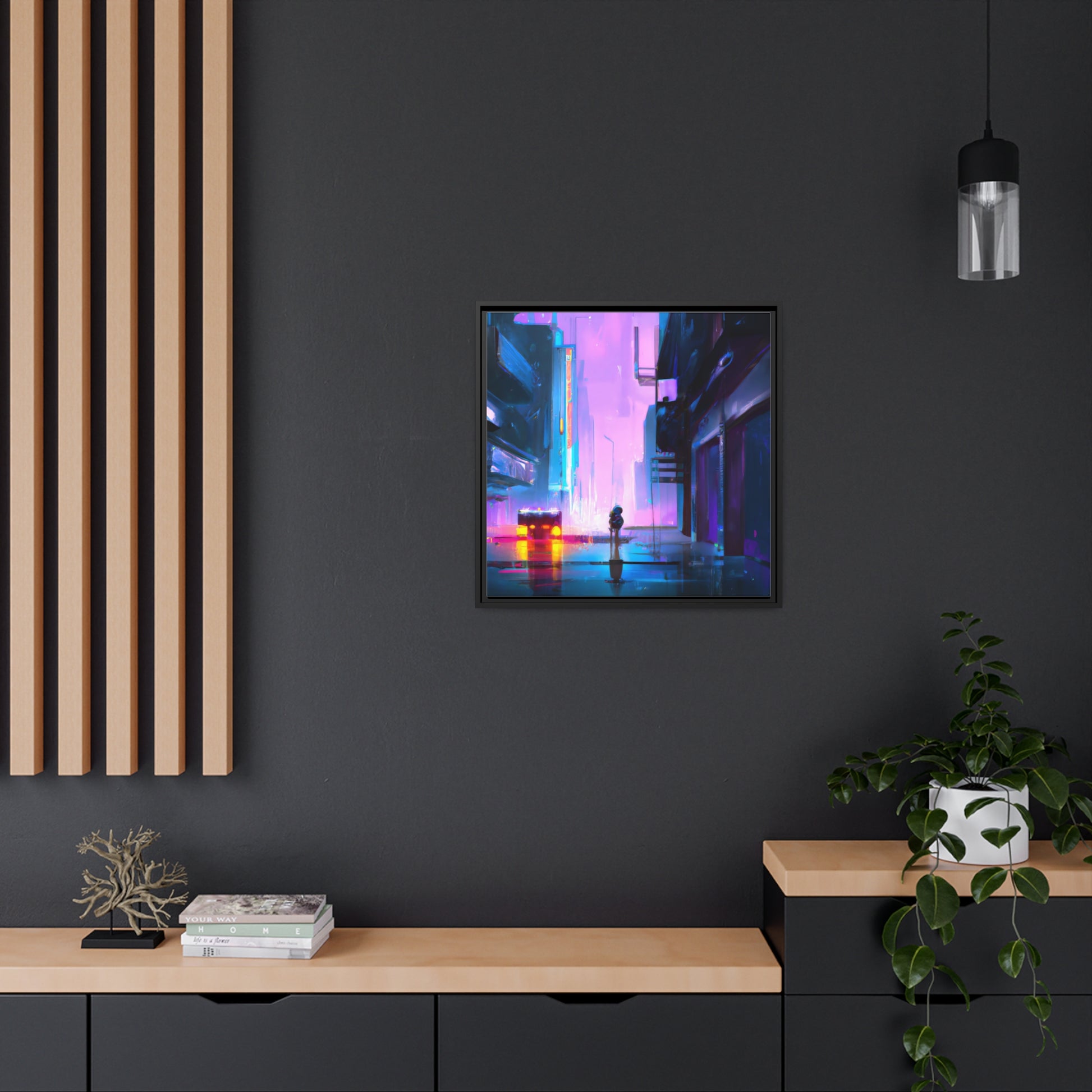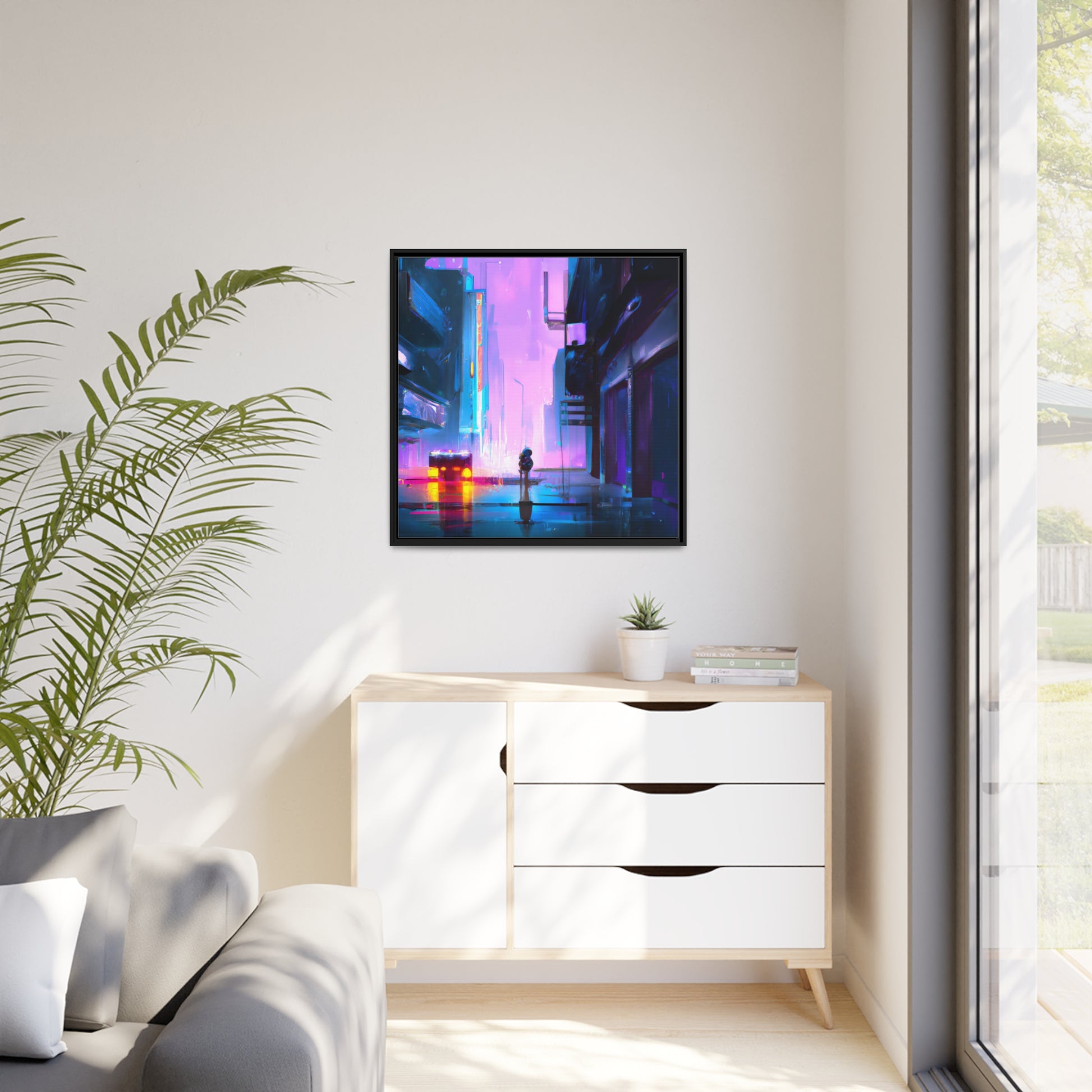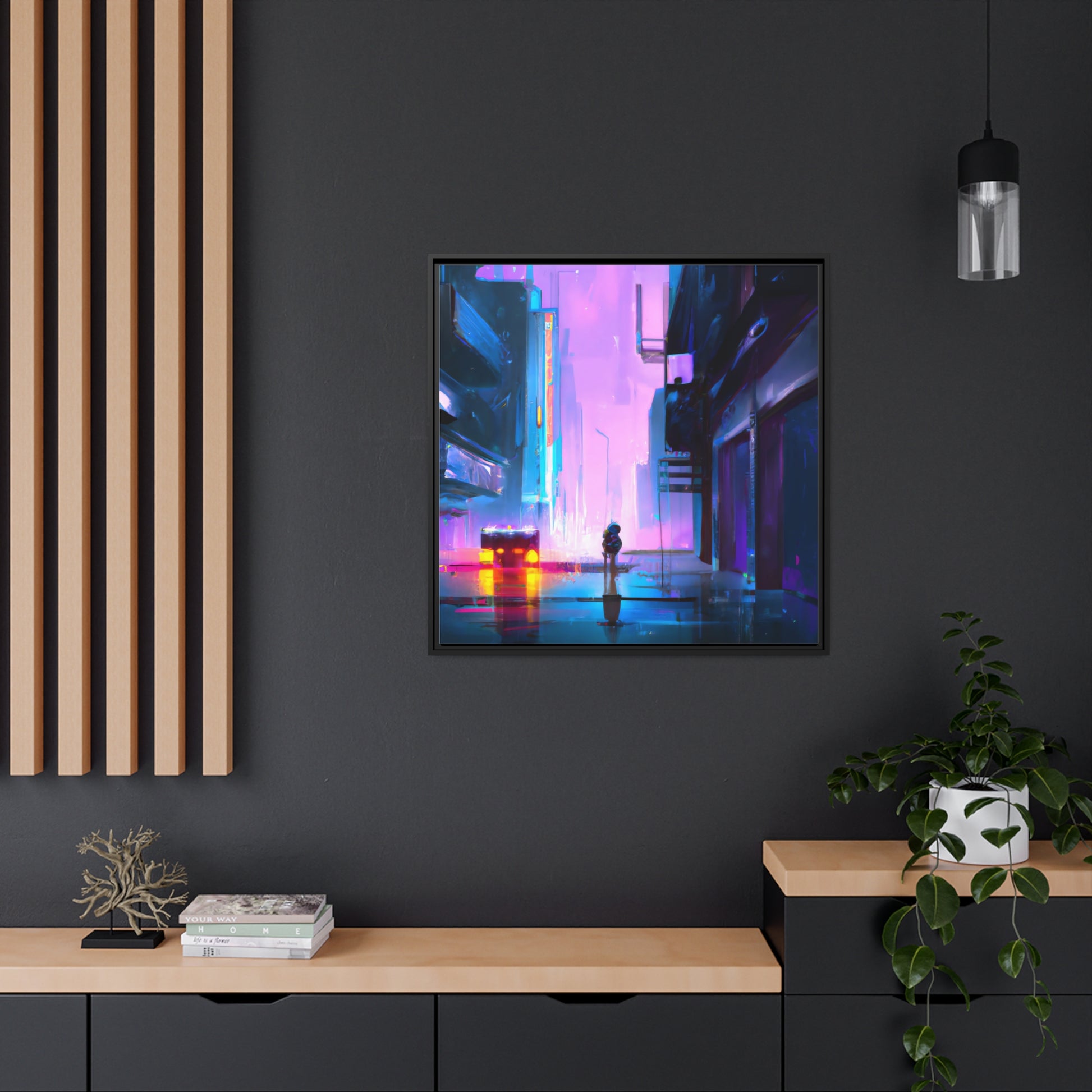 This bold modern canvas features a stunning cyberpunk painting, with dreamlike synthwave scenery and futuristic digital art. A perfect one-of-a-kind home decoration piece, this unique canvas is sure to bring a dynamic visual experience to any space. #cyberpunk #synthwave #digitalart #painting #canvas #futuristic #decor #vibrant #modern #bold #dynamic