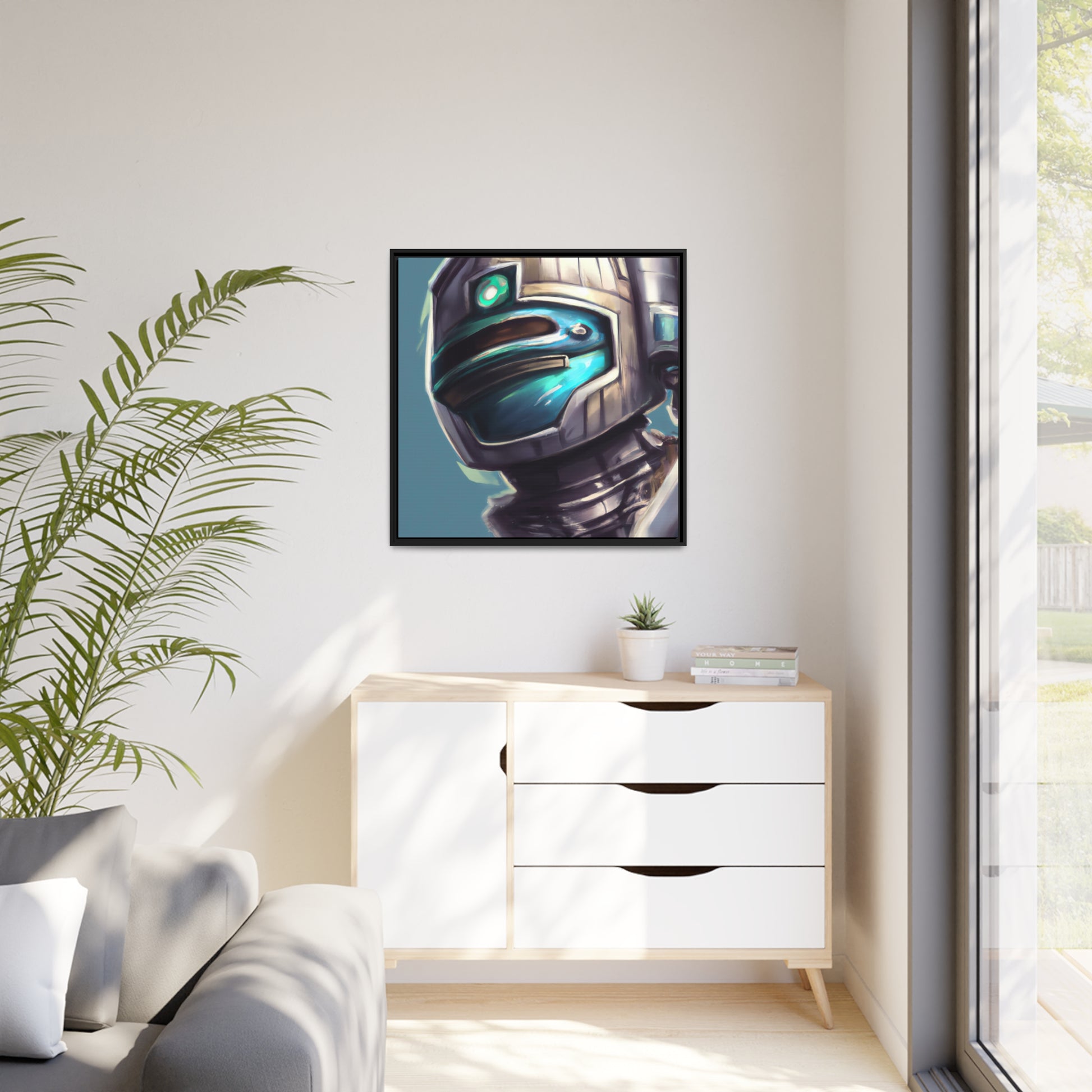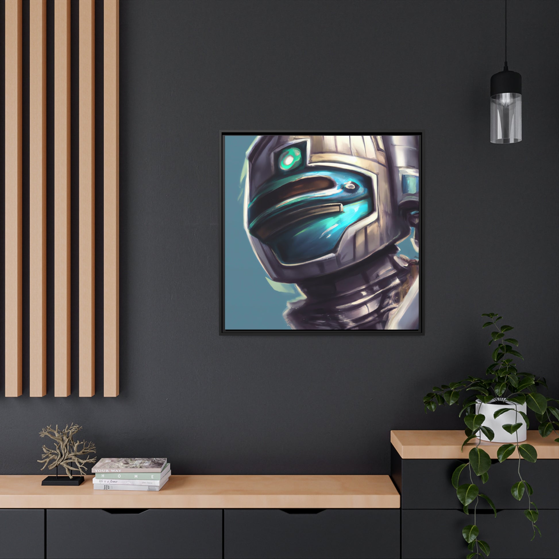 This one-of-a-kind digital artwork of a robot on canvas is sure to make a statement wherever it's hung. Bold colors and intricate details create a visually mesmerizing effect, and the robot's head is fully visible. Hang this canvas to bring a bit of life and vibrancy to any room. #Robot #DigitalArt #Space #Statement #Canvas #StatementPiece #Unique #Mesmerizing #Bold #Vibrant #Colorful