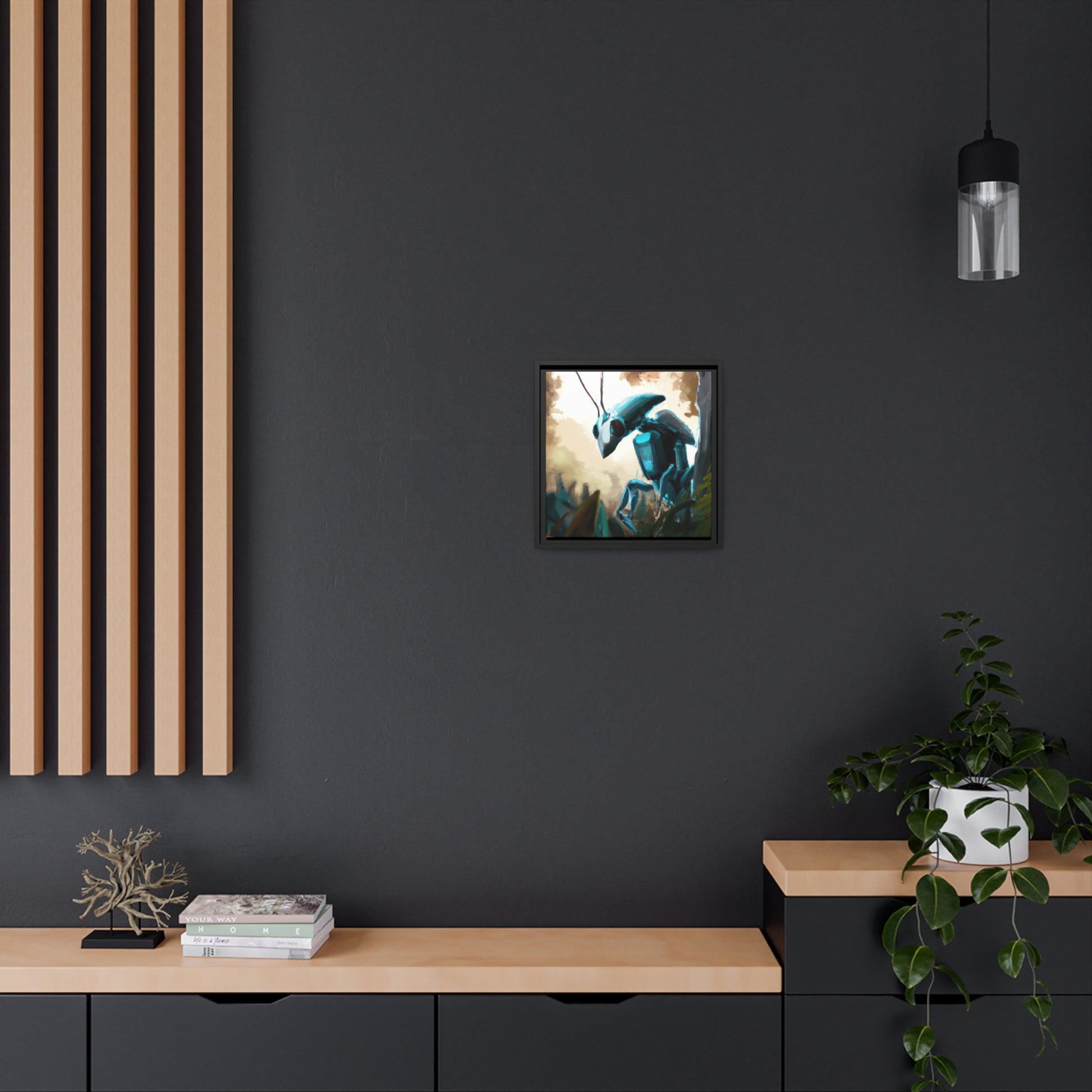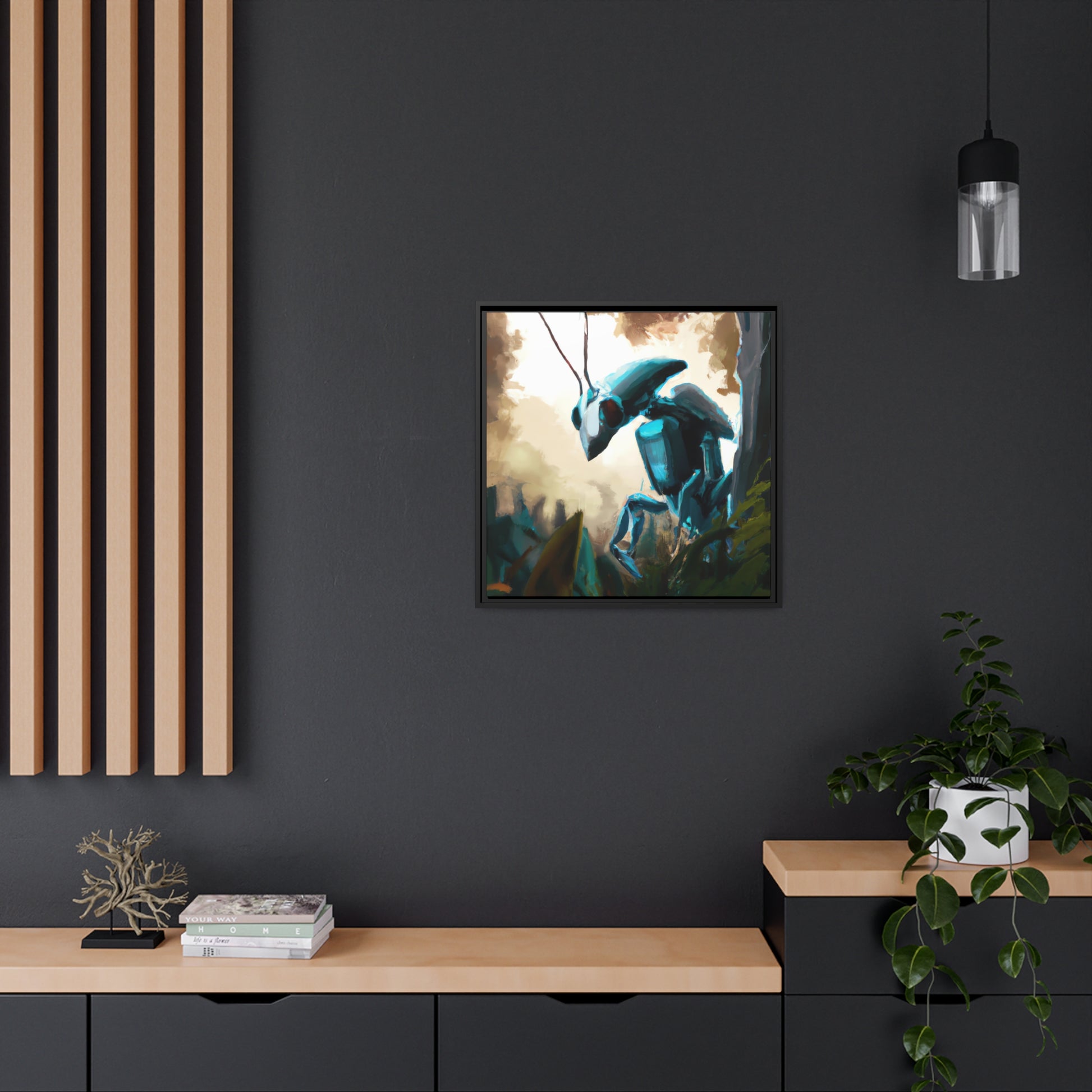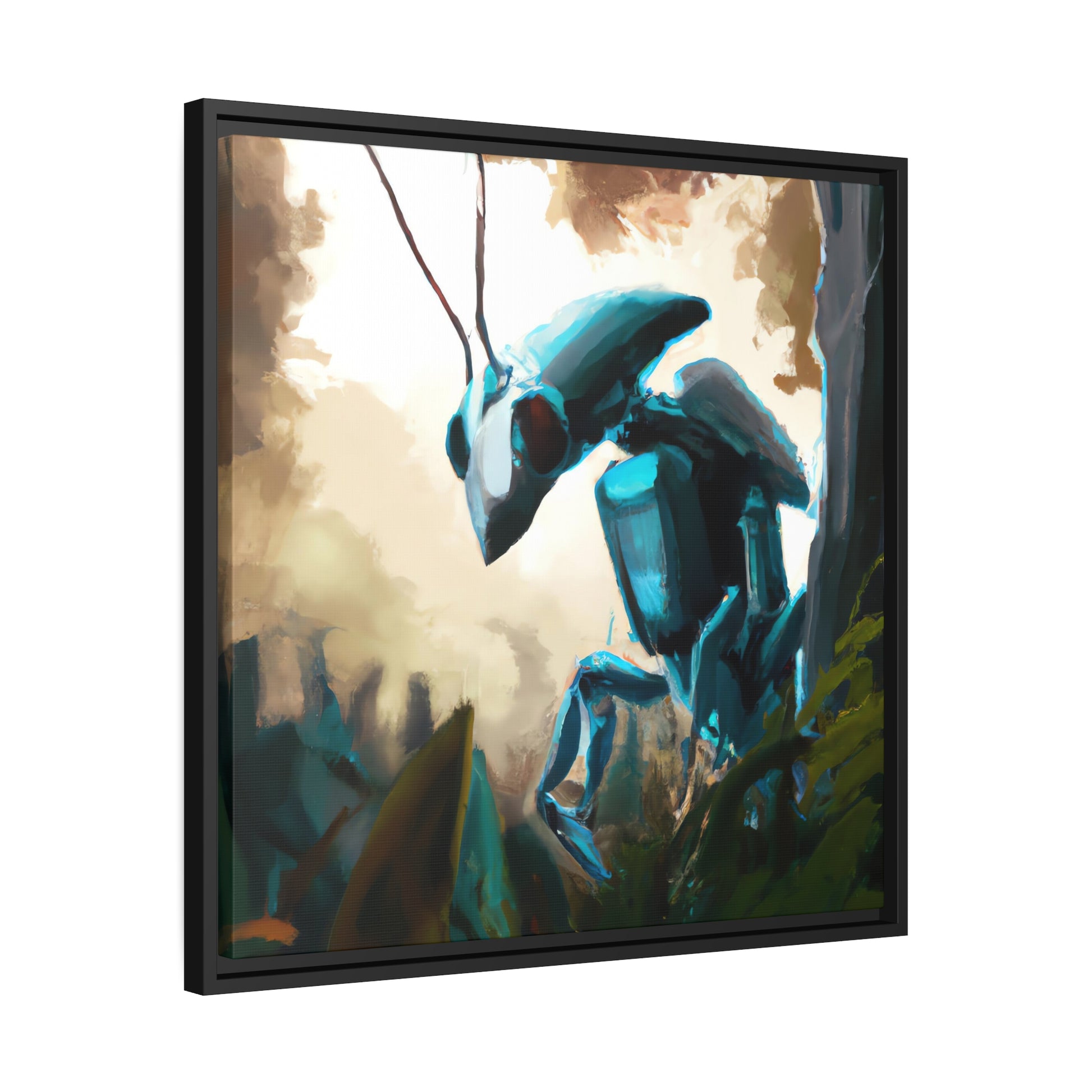 This canvas captures an alluring cyber insect moving gracefully in its natural environment. The digital art includes vibrant hues of blues, greens and yellows which add an intense eeriness to the painting. A mesmerising scene that's sure to make a statement in any room. #cyberinsect #digitalart #painting #canvas #nature #eerie #statement #vibrant #hues #blue #green #yellow