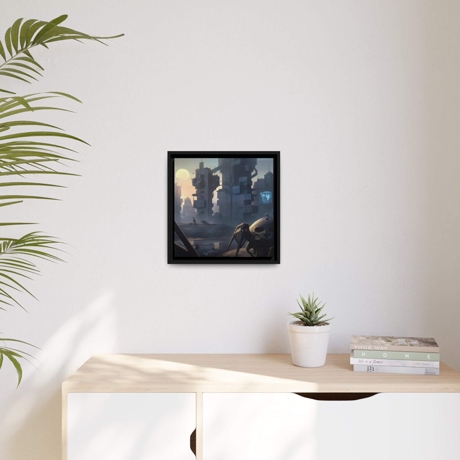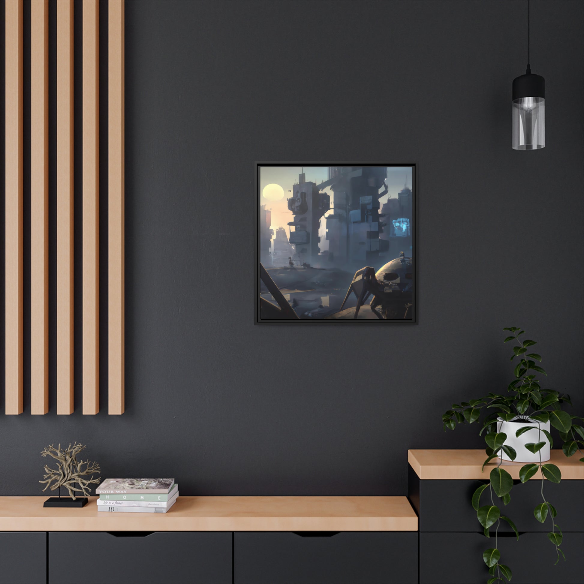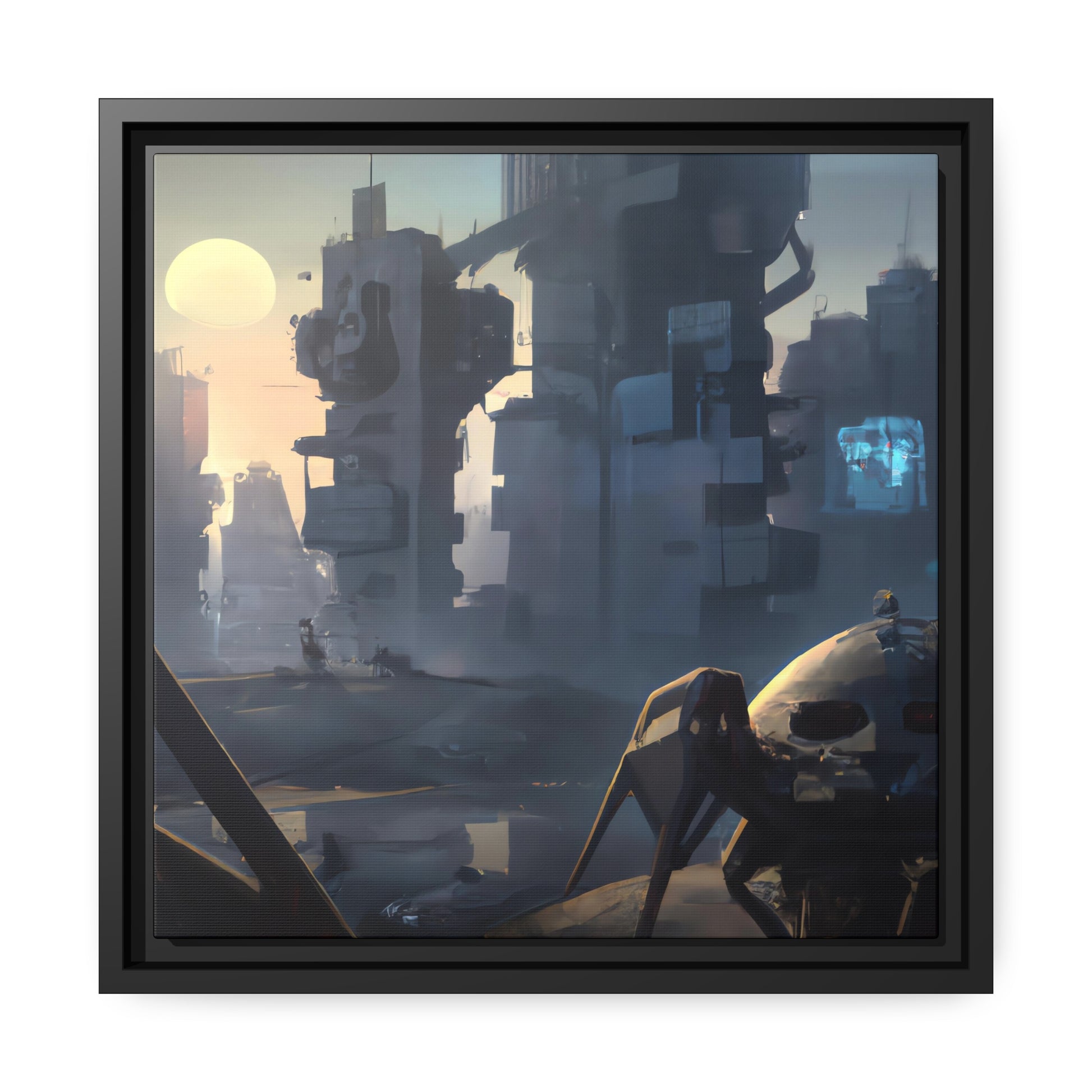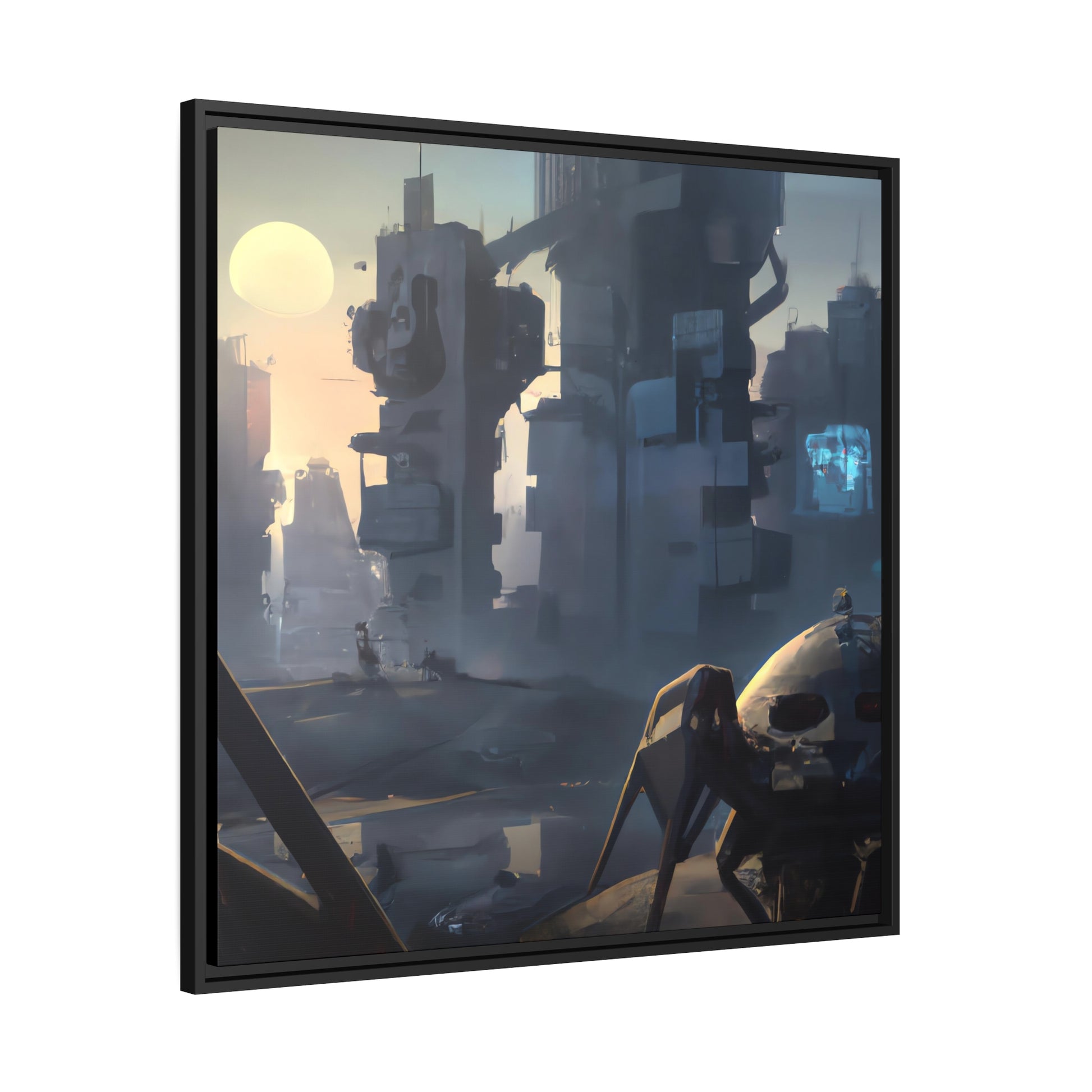 This canvas of dystopian science fiction is a creative digital representation of a futuristic habitant in a world of its own. A perfect addition to any room in your house, it adds some edge and a stunning focal point to your decor. It's sure to capture the imagination and add a mysterious vibe to any area! #digitalart #canvas #futuristic #dystopian #scenario #sciencefiction #habitant #painting #dystopia #futurism #mysterious