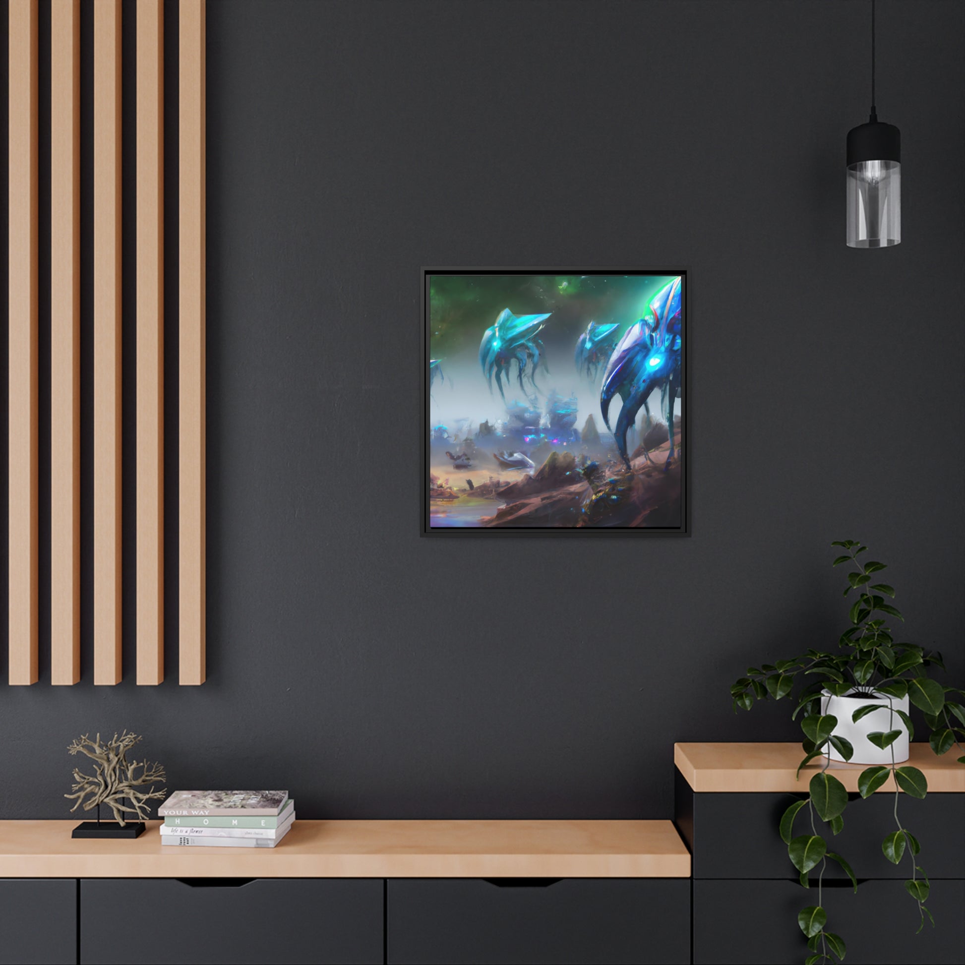 This vibrant digital painting on canvas is the perfect center piece for any bedroom, living room or office. It features an out of this world scene of strange alien life on a distant planet. The perfect mix of colorful shades and imaginative designs make this a truly captivating piece of art. #digitalart #canvasprint #alienlife #planet #vibrant #imagination #creativity #statementart #interiorstyle #homedecor #inspo