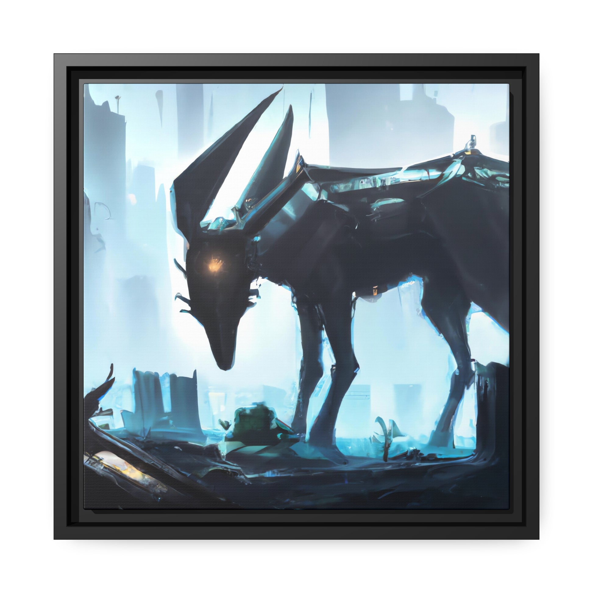 This incredibly lifelike digital painting of a cybernetic animal in its environment will take your breath away! The vibrancy of the colors and the intricate details of the scene will fill the room. This canvas is the perfect way to add a hint of life and energy to your home. #cyberneticanimal #digitalart #painting #canvas #homedecor #artwork #interiordesign #modernart #cyberpunk #fantasyart #scifiart
