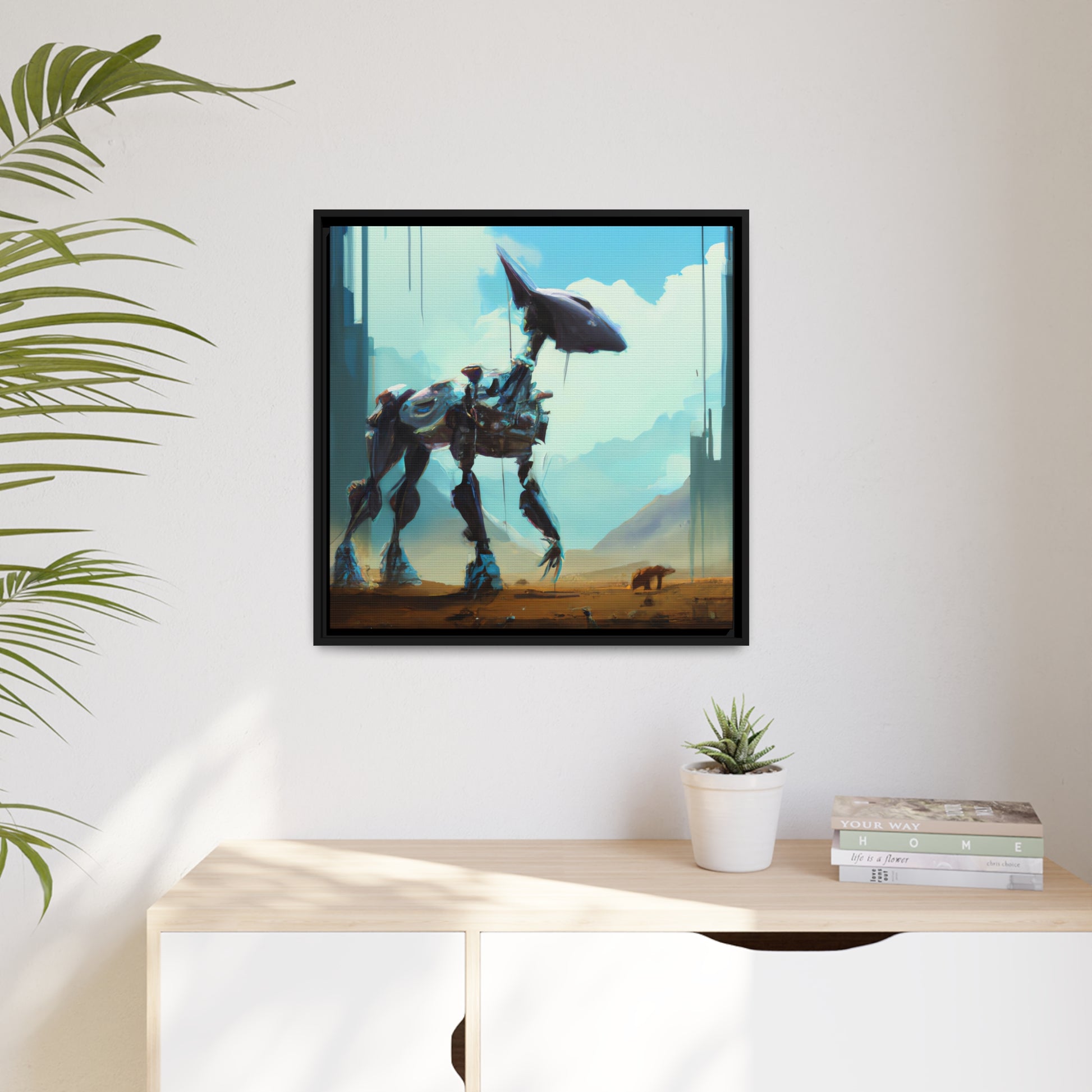 This amazing digital art canvas of a cybernetic animal in its environment will be a conversation piece for your home or office. The high quality canvas reproduces a vivid painting in rich detail and color that will be sure to draw attention. Hang this unique masterpiece in any room to enhance the decor and create a bold statement. #art #digitalart #canvas #painting #cyberneticanimal #creative #statementpiece #interiordesign #home #office #mural #decor