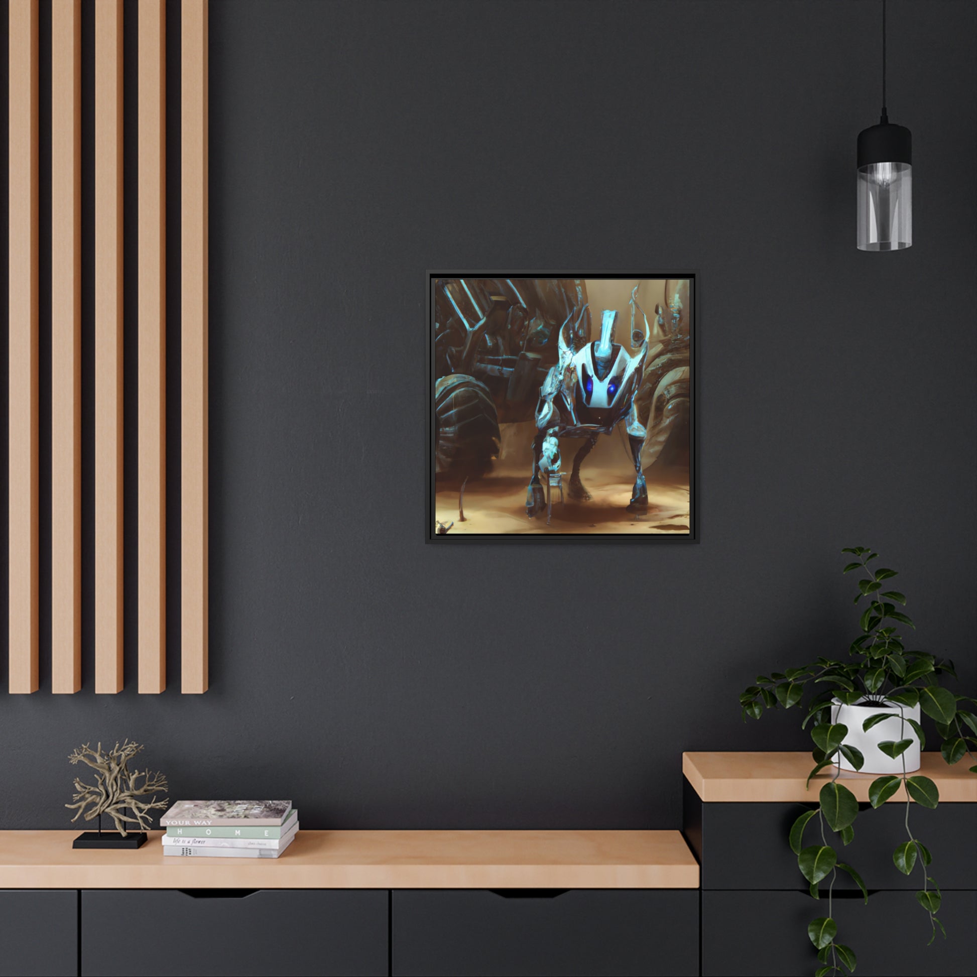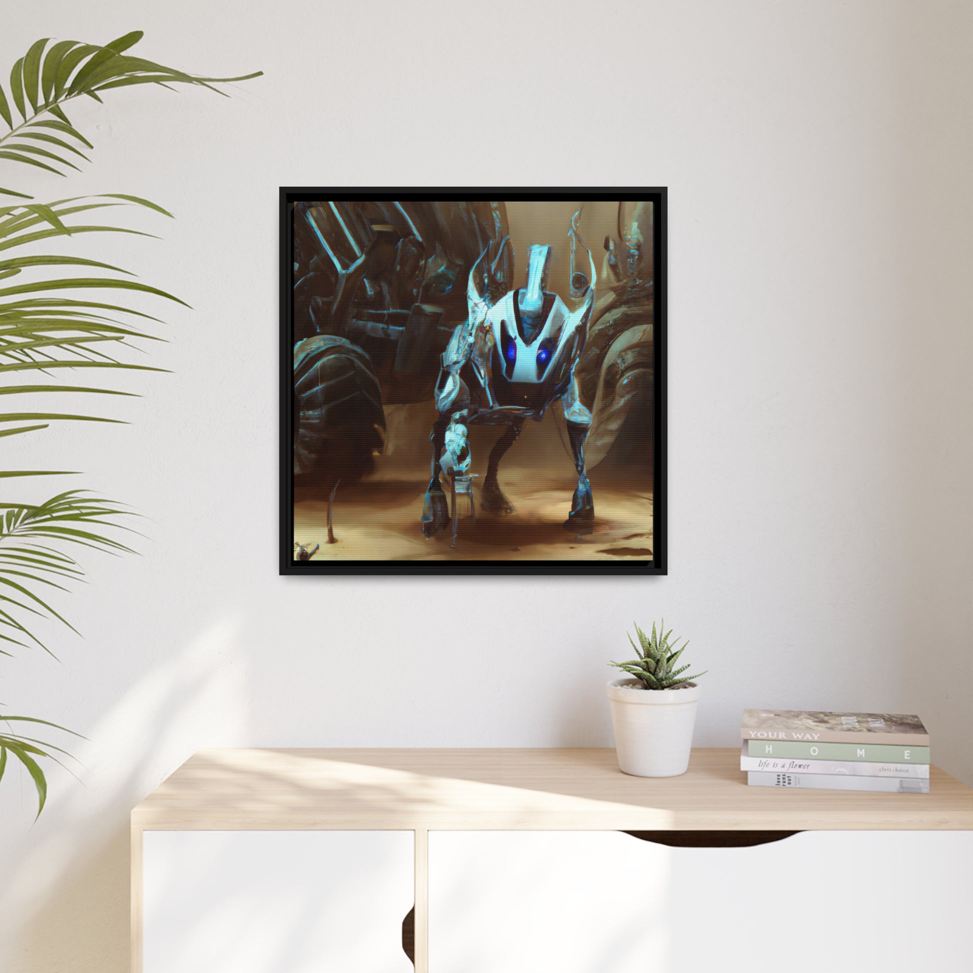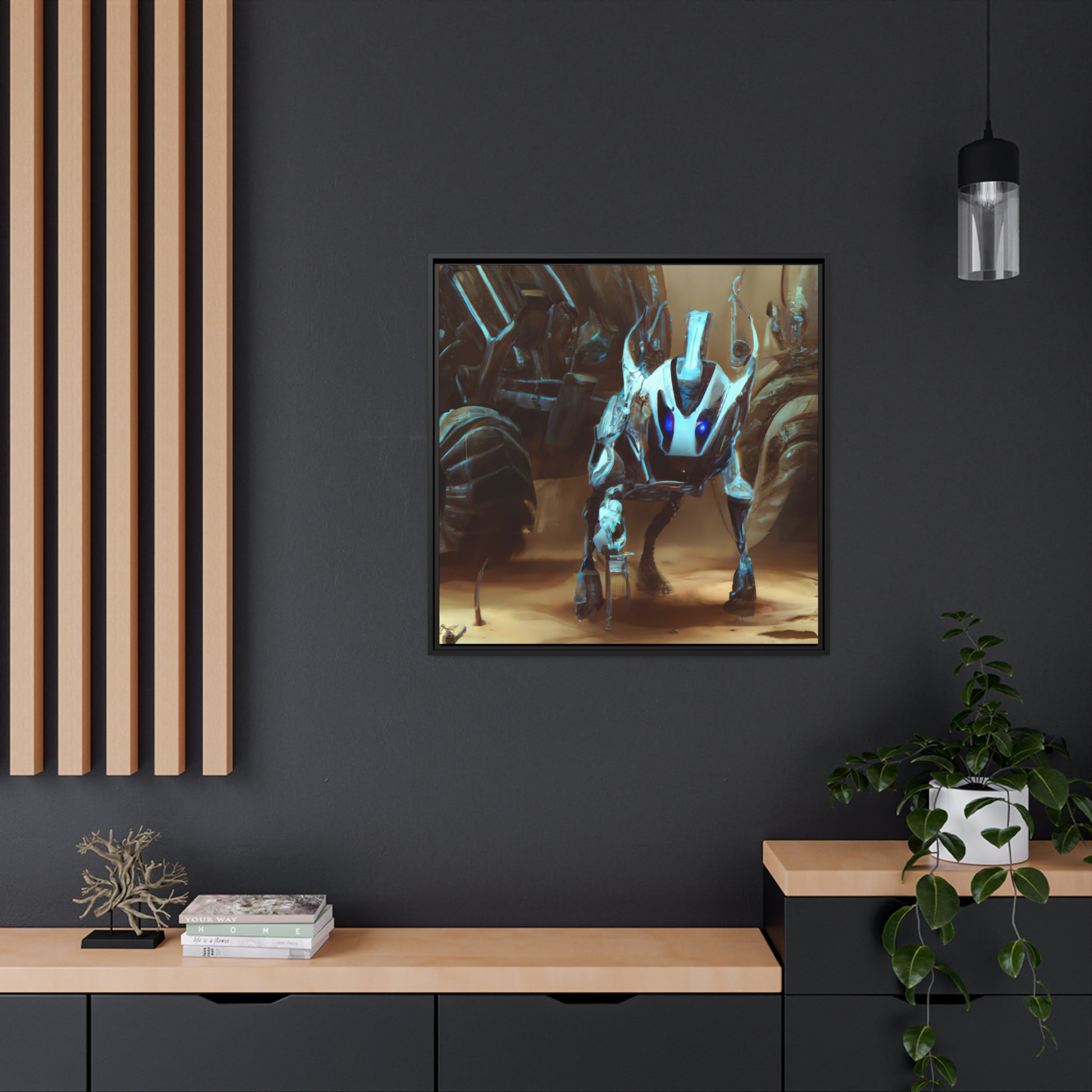 A beautiful digital canvas of a cybernetic animal in its natural environment. Capturing the beauty of nature and technology entwined in a surreal image. Perfect for adding a punch of vibrant colour and an eye-catching focal point to any space. #DigitalArt #CyberneticAnimal #Canvas #Painting #Artwork #VibrantColour #FocalPoint #Nature #Technology #ModernArt #Beauty