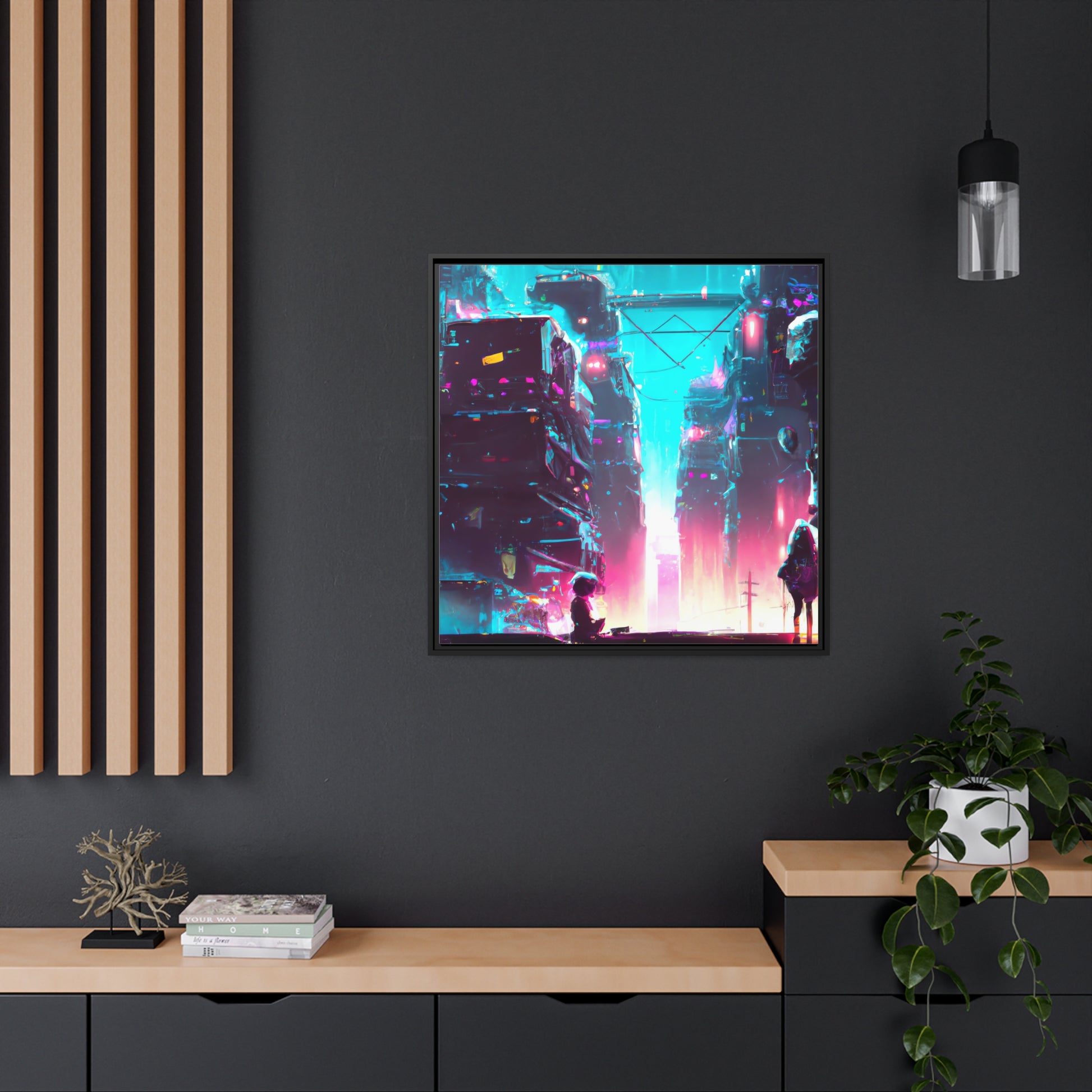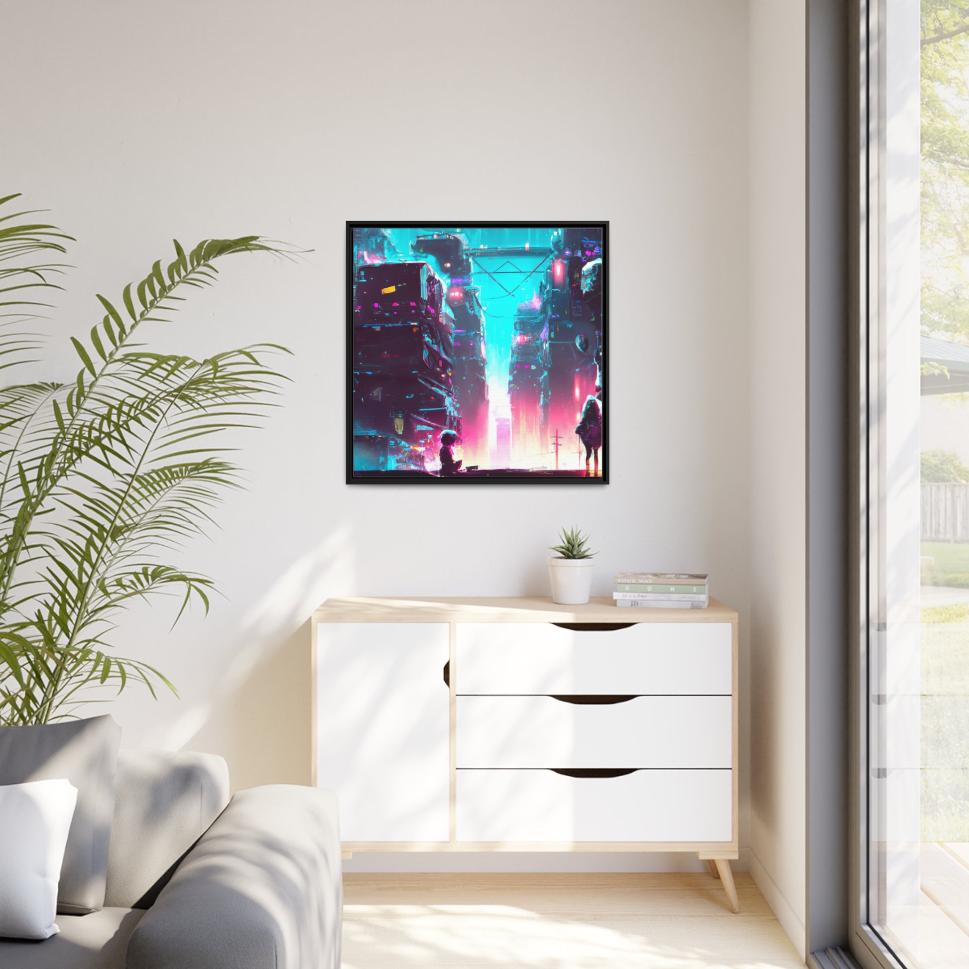 This canvas features a mesmerizing cyberpunk painting, blending the old and new worlds. With its soft synthwave and futuristic digital art, it will add a bold and modern touch to your wall. Perfect for all types of decor, from classic to cutting-edge. #cyberpunk #synthwave #digitalart #painting #canvas #art #futuristic #decor #modern #futurism #bold