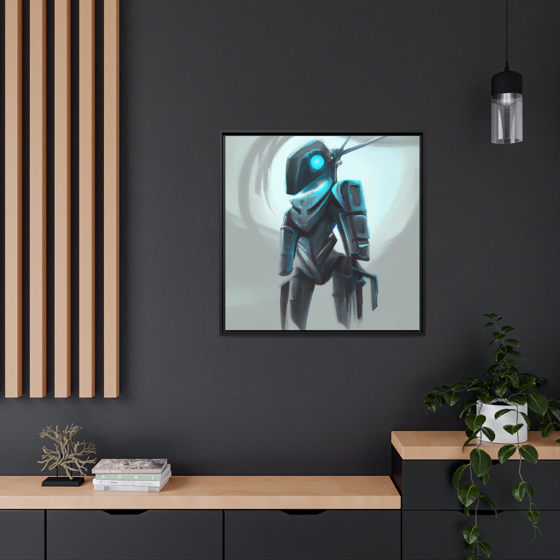 This cool canvas features a robotic character in digital art style. The character and colors are striking, making it the perfect piece of art to brighten up any wall. Give your room a futuristic vibe with this vibrant canvas- it's sure to demanding attention! #Robot #DigitalArt #Canvas #Painting #Futuristic #Vibrant #BrightenRoom #FocalPoint #WallDecor #Striking #ThemedRoom